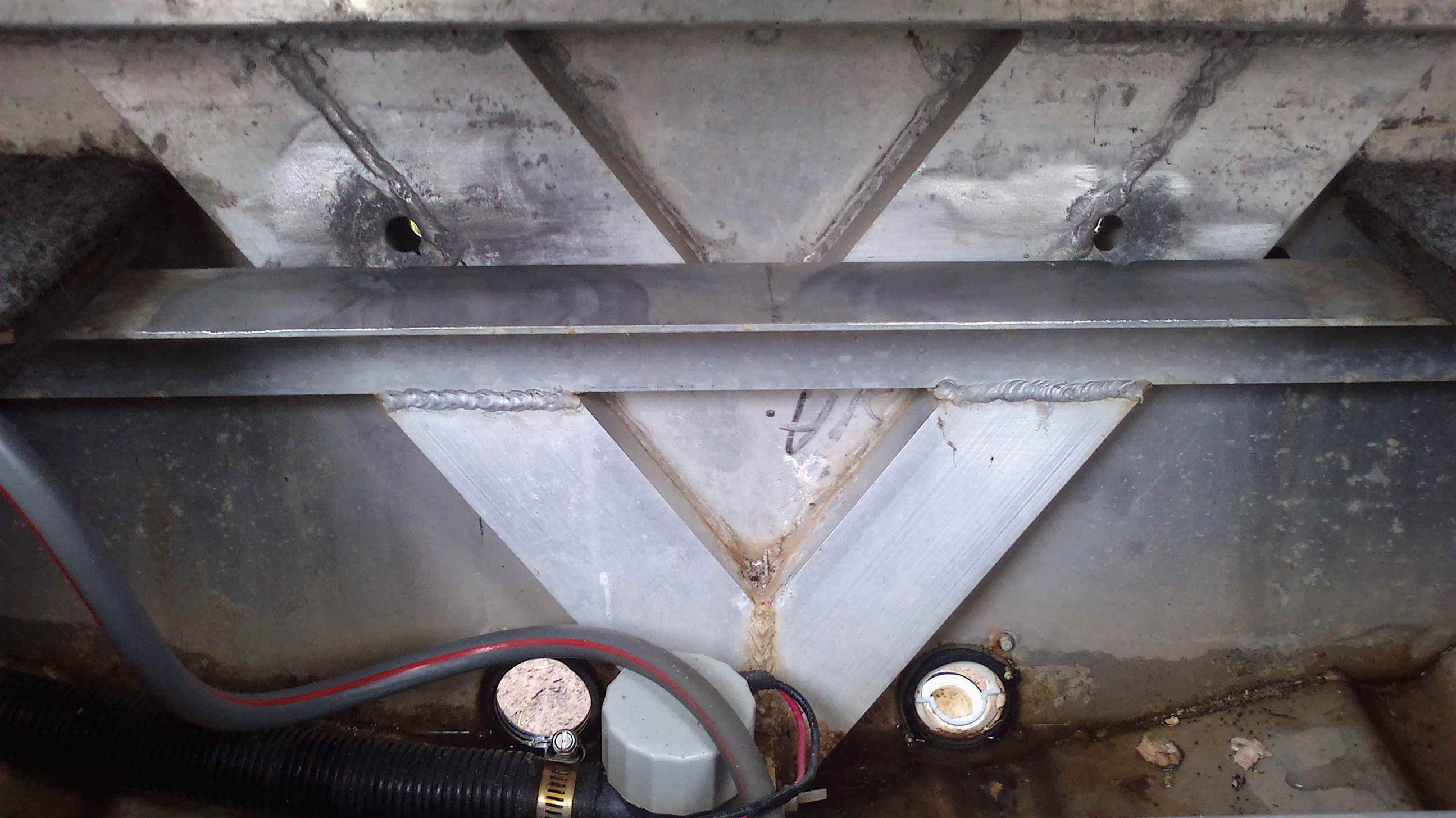 when you bolt it back together use some duralac on the bolt shafts - plenty -it helps prevent disimilar metal pitting that will happen on any alum boat where you have two different metals.