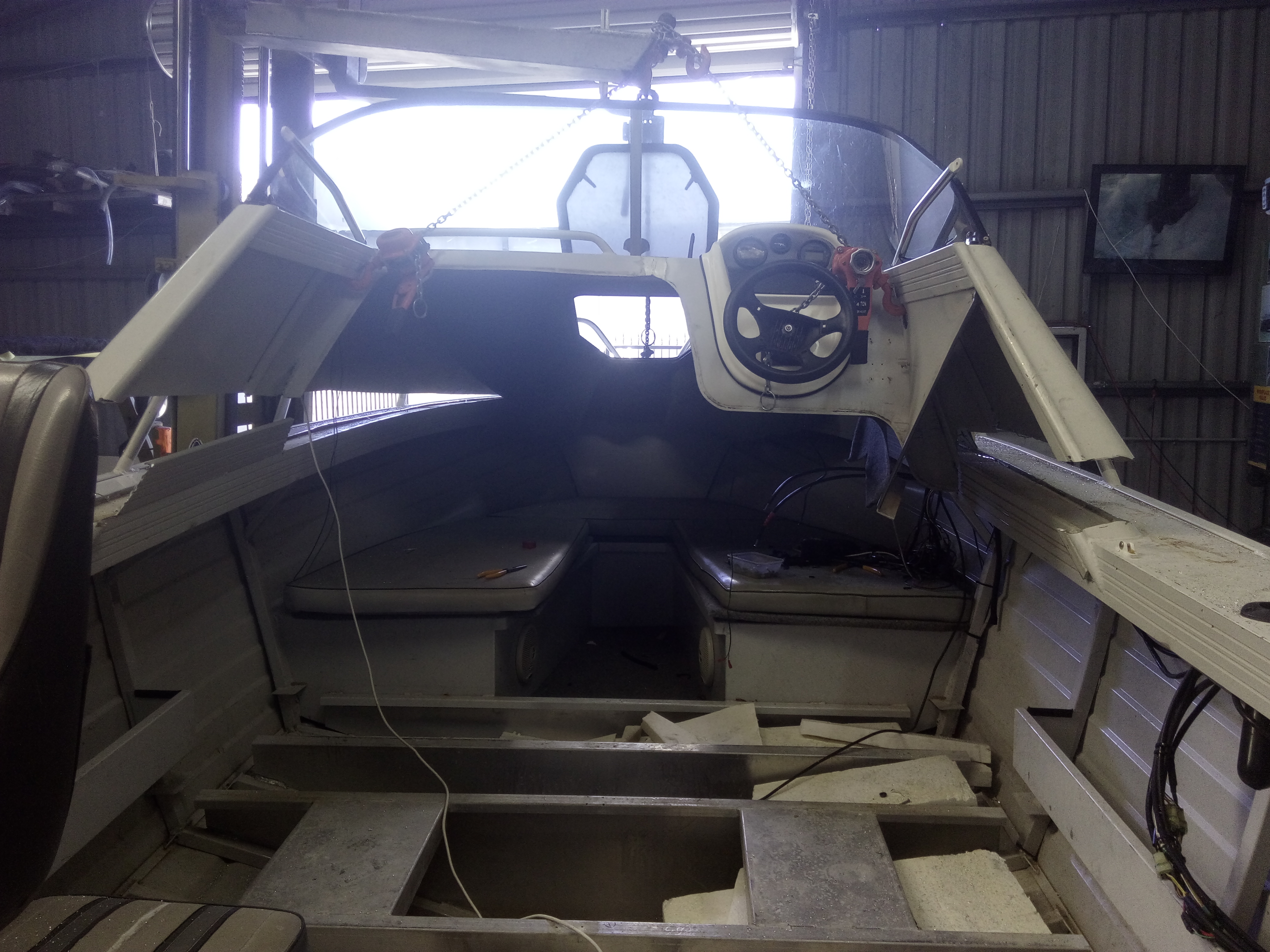 and here we go again the start of anthor major resto. Add sealed deck catch tanks fuel center console bar work storage re spray and more. lets see what i can do to this one will post updates
