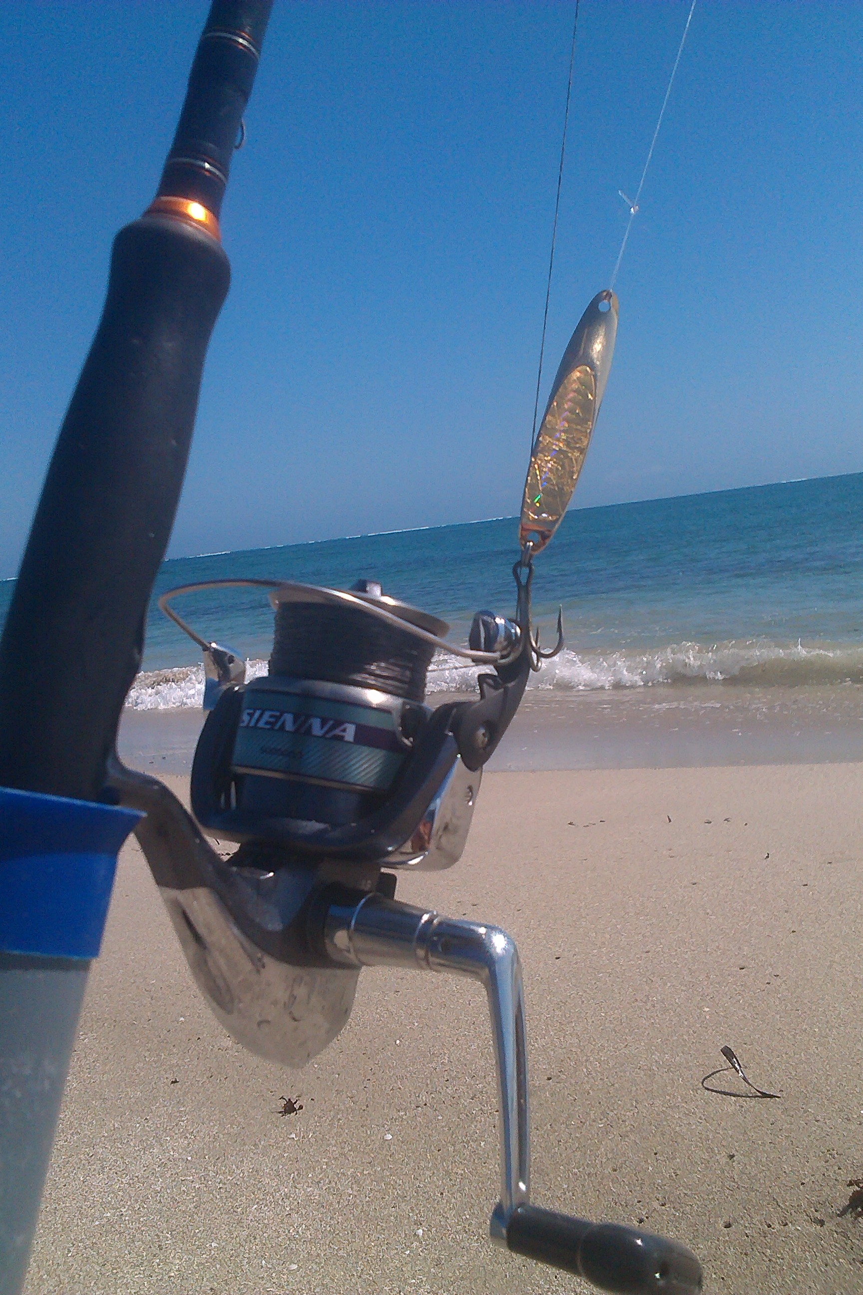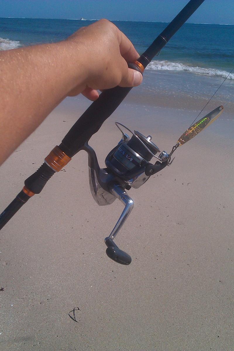 hit high tide today at 1030. fish jumping everywhere. caught heaps of little trevs and queenies with this brute of golden. very nice fish didnt get a chance to measure him but he was around the 4.5 to 5kg range. awesome fight had me snagged for brief moment. sienna 4000d matched with a team diawa 4 to 8kg,20lb fireline with a 30lb flouro leader and the magic 40g gold twisty which if you look closely is beaten and scarred