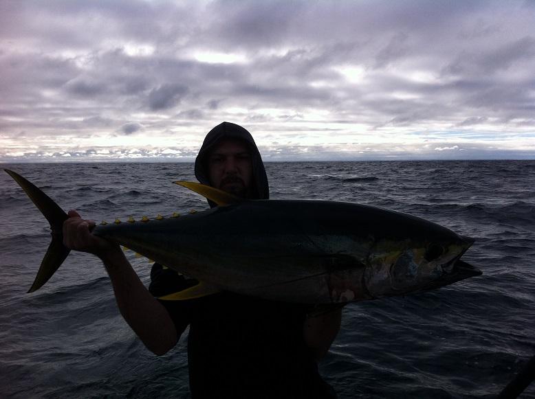 Could tell fairly quickly this was another tuna but came up pretty easy this time , 15ish minutes later had this little guy on board (looked tiny compared to the last one).