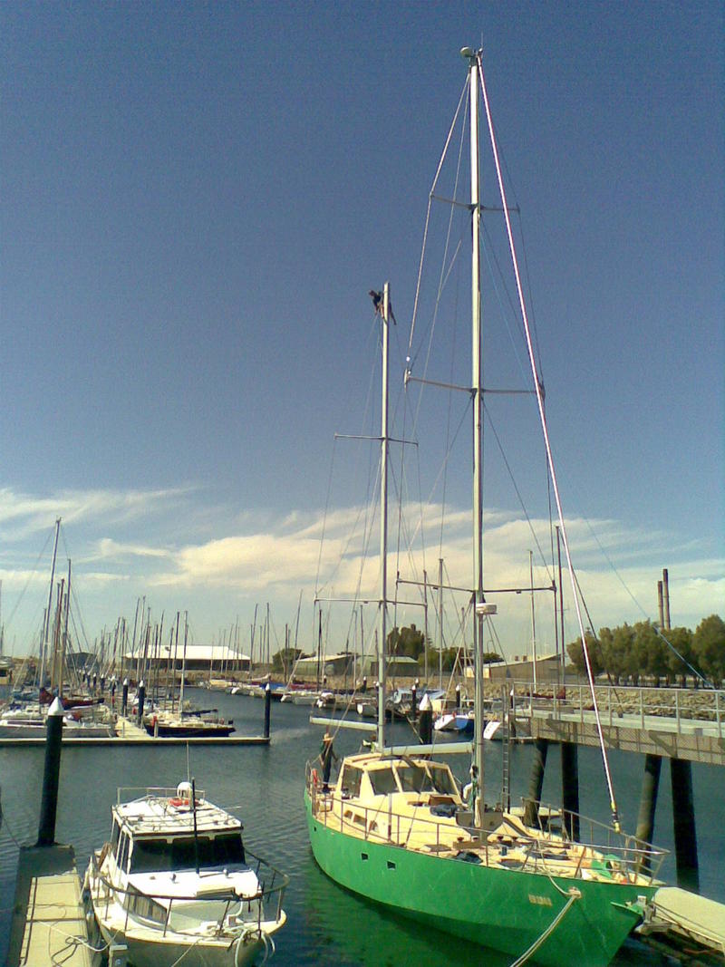 Few more pics added , just come back from being raised, cleaned and antifoul reapplied. Masts/rigging now on and main sail on (still needs mainsail cover hence the tarp) other sails to be added in next few weeks