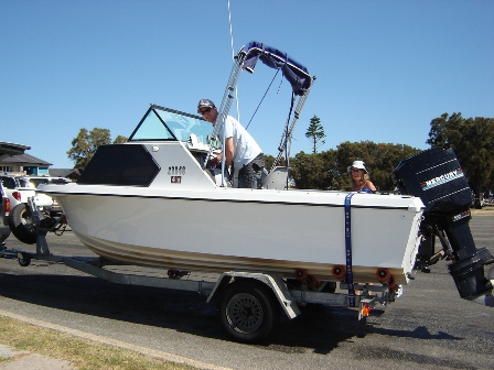 Hi Haydz Blubone's hull is a custom made that came originally from Albany. The whole boat rebuild has been an ongoing project for about 3 yrs. I actually do not have any pics of the original condition but we basically ripped everything out and started again. The hull is great on the water and rides the chop and swell well.