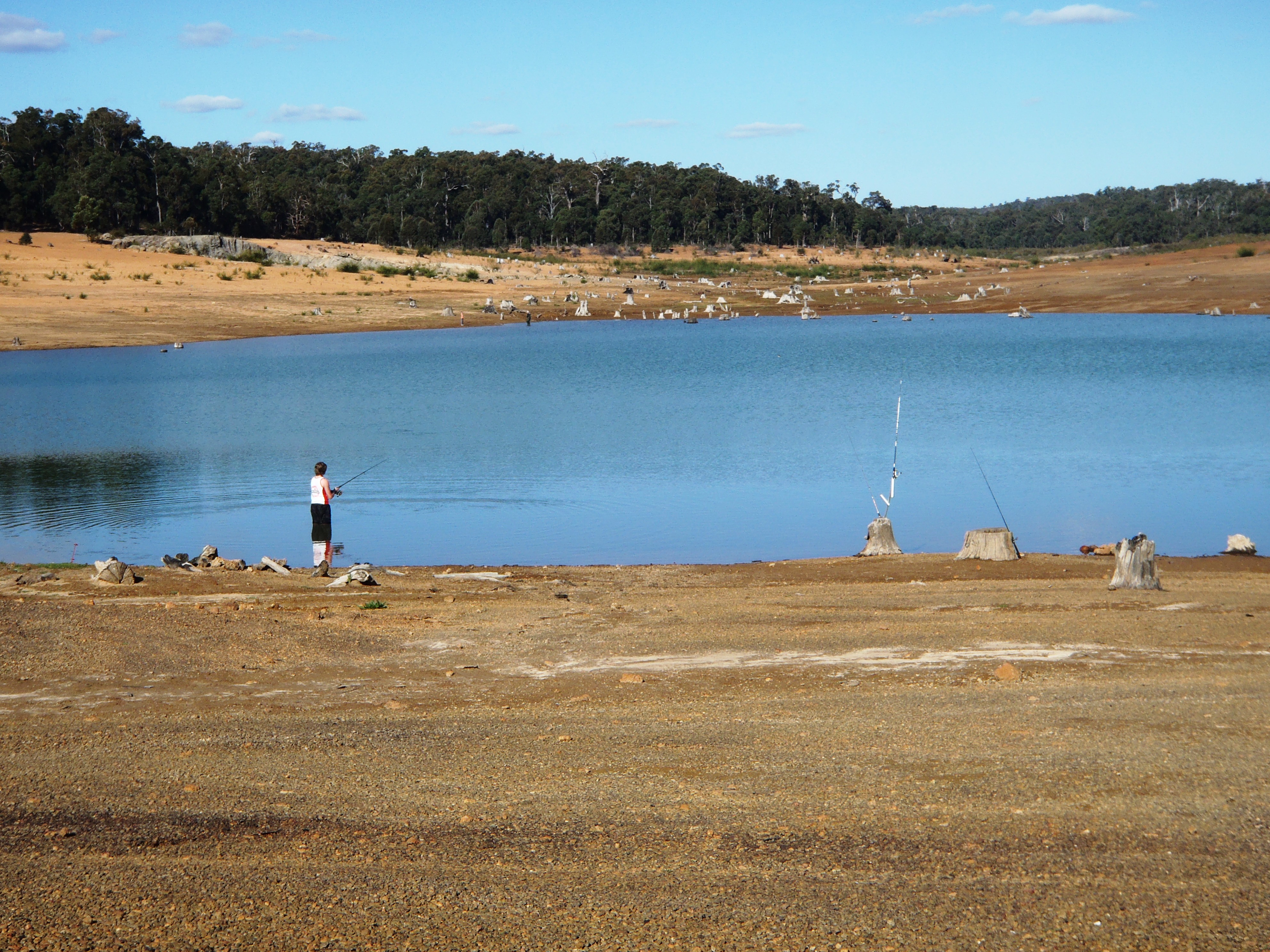 Headed down to Brockman dam midday Saturday to find a very empty dam. Looked around for a fishy looking area,pick out a spot and setup camp for the night. Sun was out and not a cloud in sight. (Ok maybe a couple)