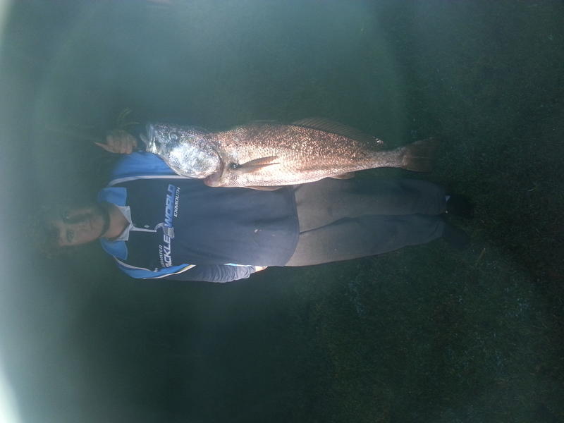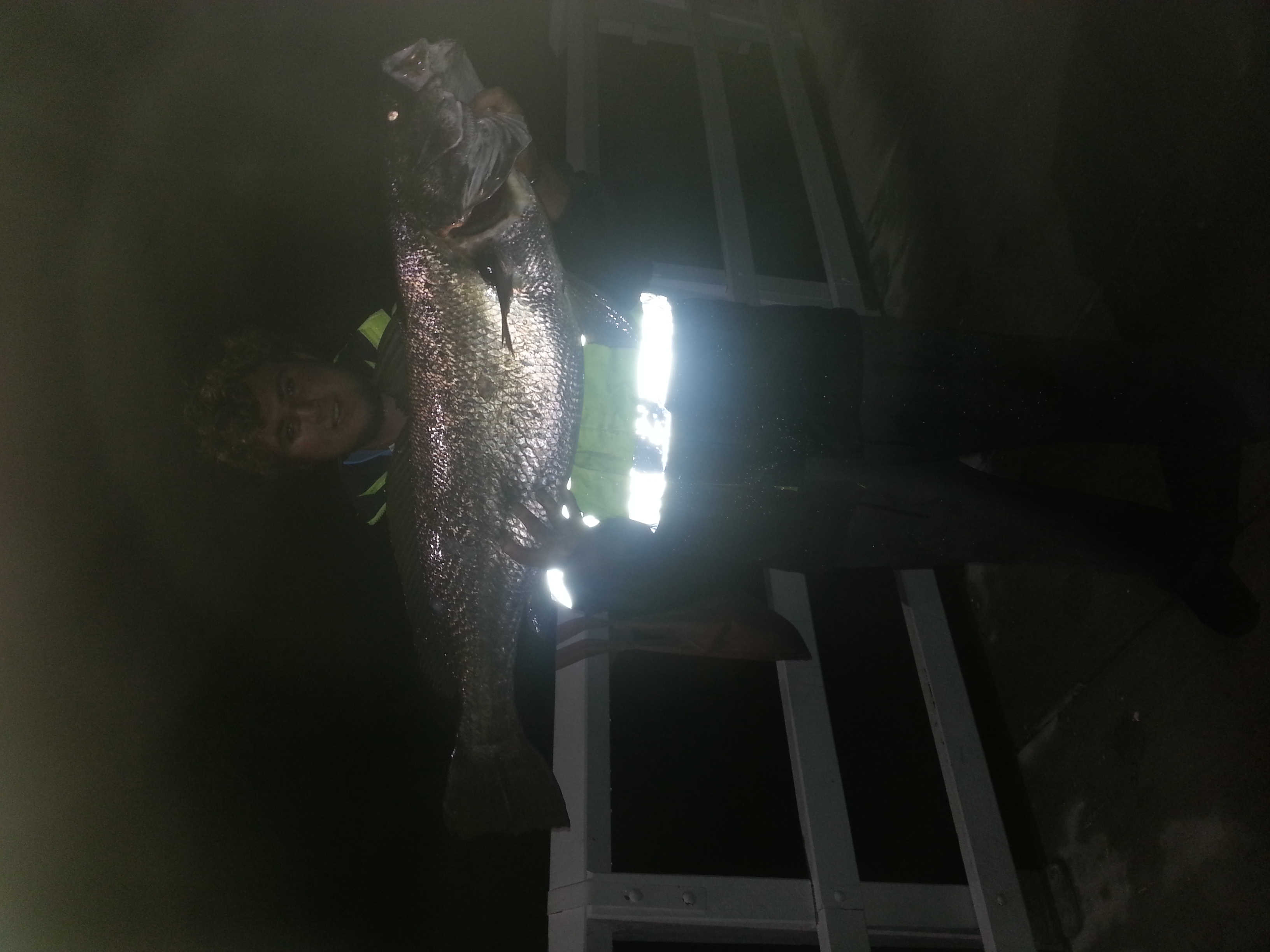 after fishing busso jetty saturday night and lamding my first busso jetty mulloway my mates where kee to head back and get there own. So off we went sunday nifht back at jetty there at 4 amd walked down to our spot yakkas and slimy mackeral where hard to find caught a couple and out went the handlines and the torsa after two hours of nothing much besides a few horse squid I decided to through out last handline and yakka didnt even swim to the bottom and we where on took good few runs amd about 15minuts to get in few tense moments at the gaff finally got it and lifted on went 15kg two in two nighrs was stoked both where caught about 7 oclock.