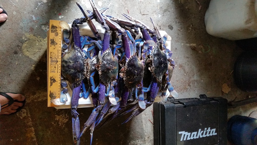 Twas a great day on the water today, good lot of blues. Crab and prawn wantons for dinner tonight, fresh crab sandwich coming up for lunch tomorrow then maybe chili crabs. I will be walking sideways before you know it and the best bit was I didn’t pull a single net all day. I am used to taking the kids out and doing the lot so was an easy day for me.