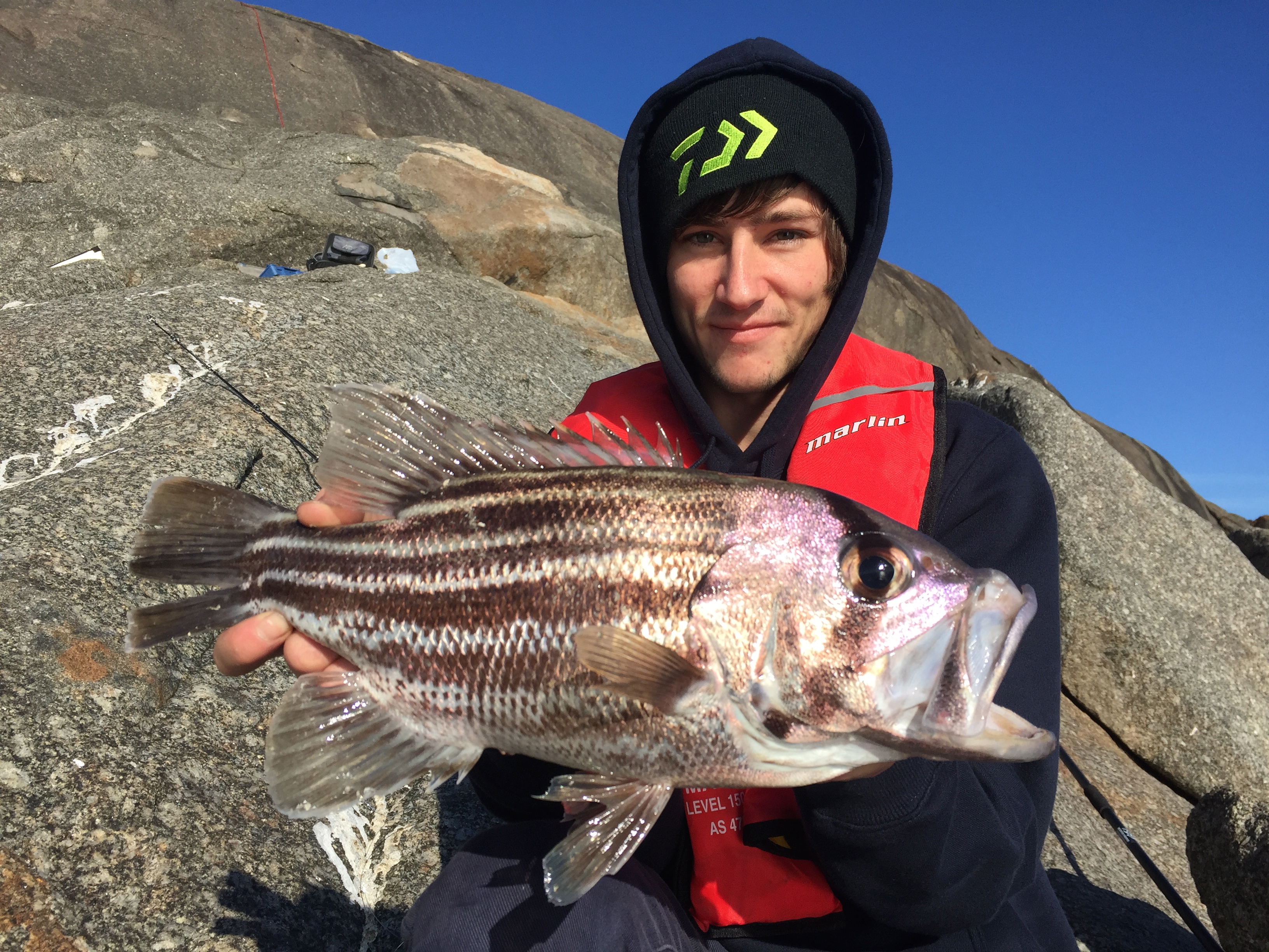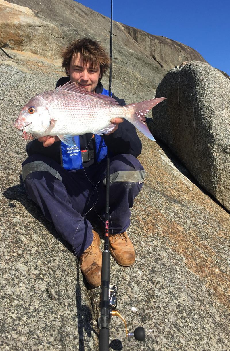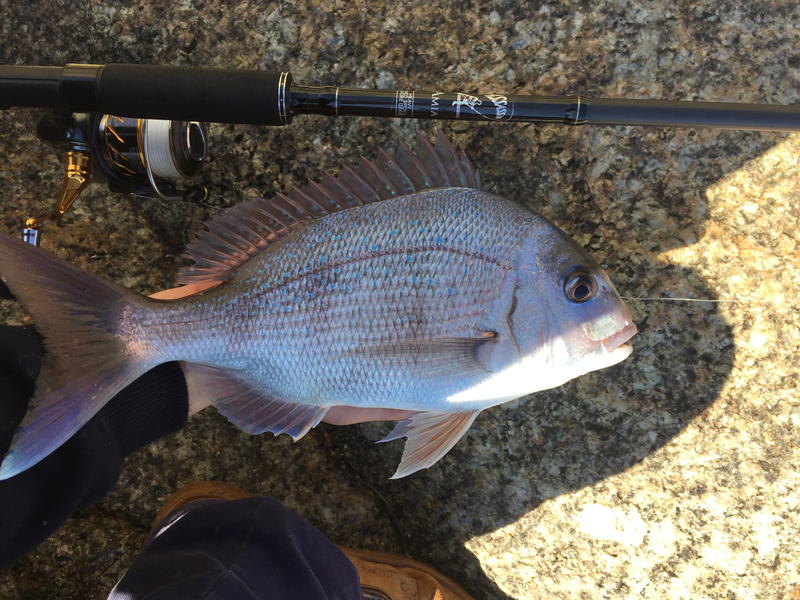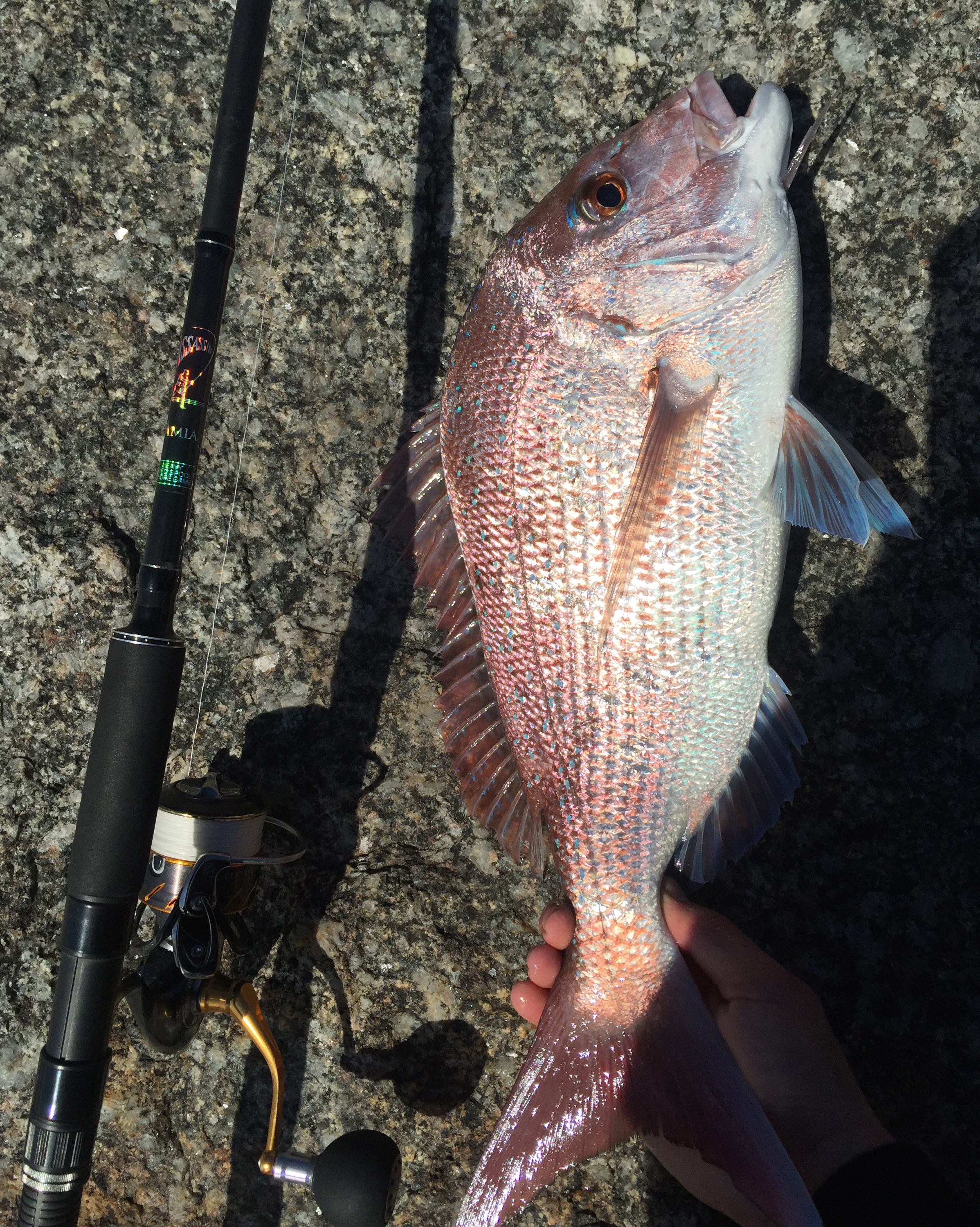 managed to get out for a fish with my brother a couple of weeks ago being my first proper fish in nearly 6 weeks so i was hanging to get out!! target for the day was sambos at a common spot but after 6 hours of live herring not a sniff but with the light gear throwing half mulies as bait we managed a pretty fun day!! managed to land 10 little pinkies and 2 small dhuies off the rocks between us, all the undersized fish went back and one pinky was kept for a feed. went bloody hard on 20lb gear, 3012H certate and assassin amia 11ft rod for me landing all but one pinky and a dhiuie myself.