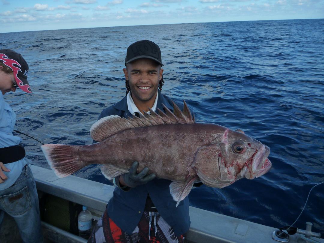 Lindsay wasnt feeling to well for the most of the deep fishing but braved it and managed to drop a line down and was rewarded with another greyband, so everyone managed to catch one.