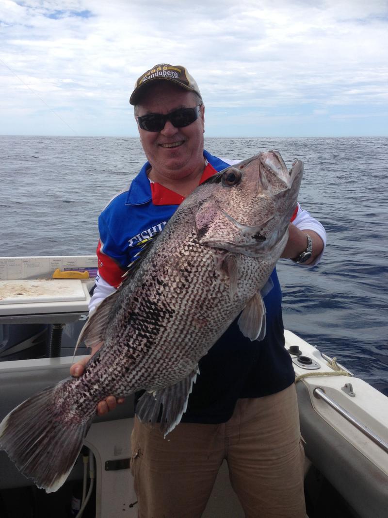 On the water at Gentlemens hours of 7.30 and headed out to a couple of areas that we had previously fished. The new transducers worked a treat marking what we believe to be fish at 26 knots in 42m. A couple of drops and quick drifts and the fish started to come on board. First a big Sargent Baker, bait. Second a small (sized) pinky, released. Third a 2.5kg baldy and a stonker black arse. Next drop 3kg pinky and another bigger baldy. Next drop, whammo, 14kg dhu and his slightly smaller mate at 11kgs - all bagged out by 10.30.