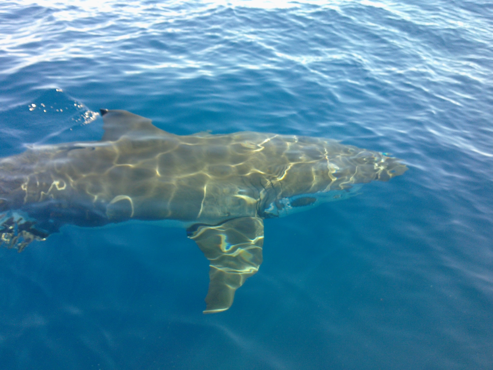 Yeah Video is better but 53Mb so a little big. I was only in water for a second just to cool off but yes i think I'm very lucky or unlucky to jump in where one was. We were about 35km offshore so no kid swimming