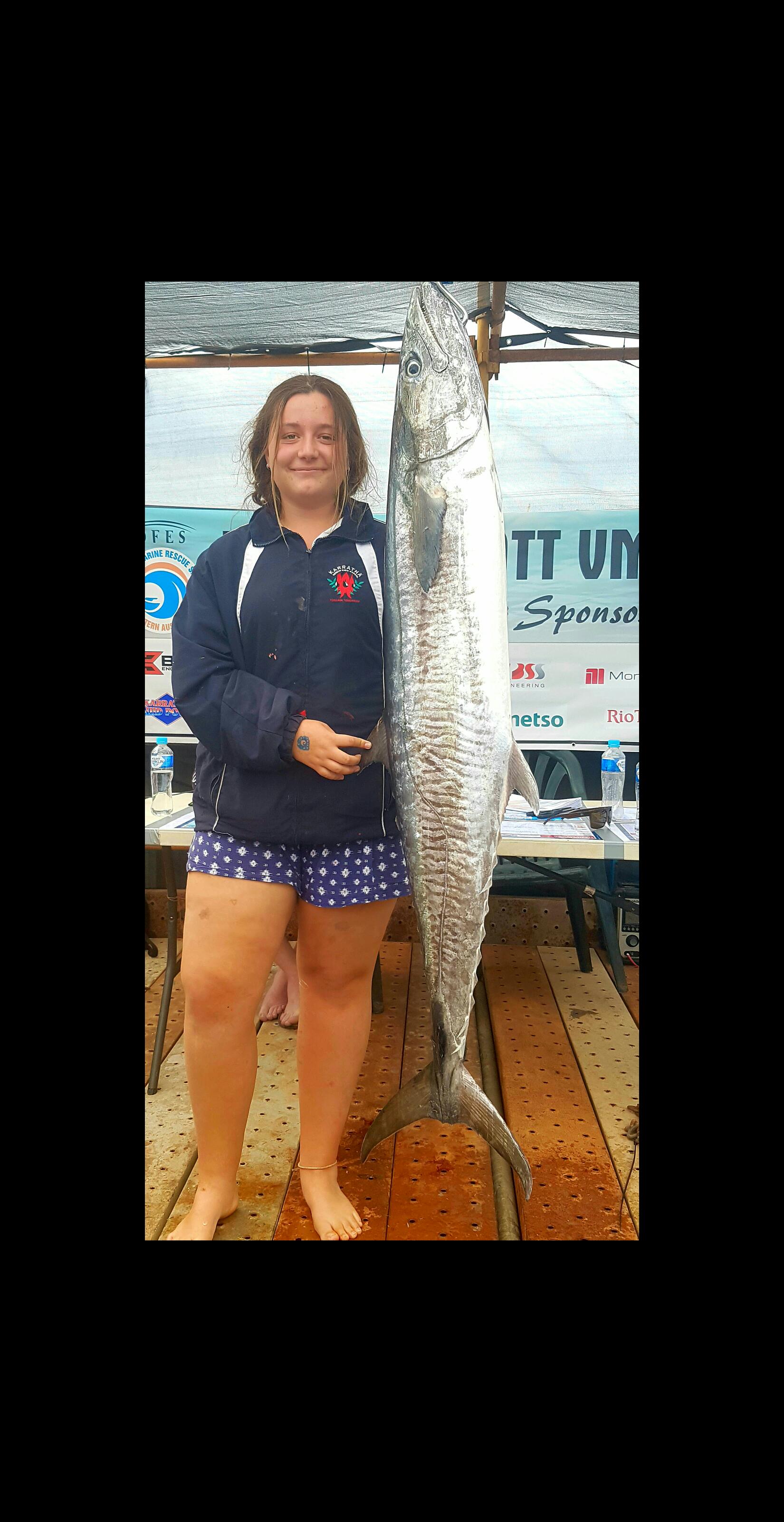 My daughters Mackie in a local comp in Wickham it went 24.08kg and she took out largest mackeral junior division . Young lady did a great job hauling it in and