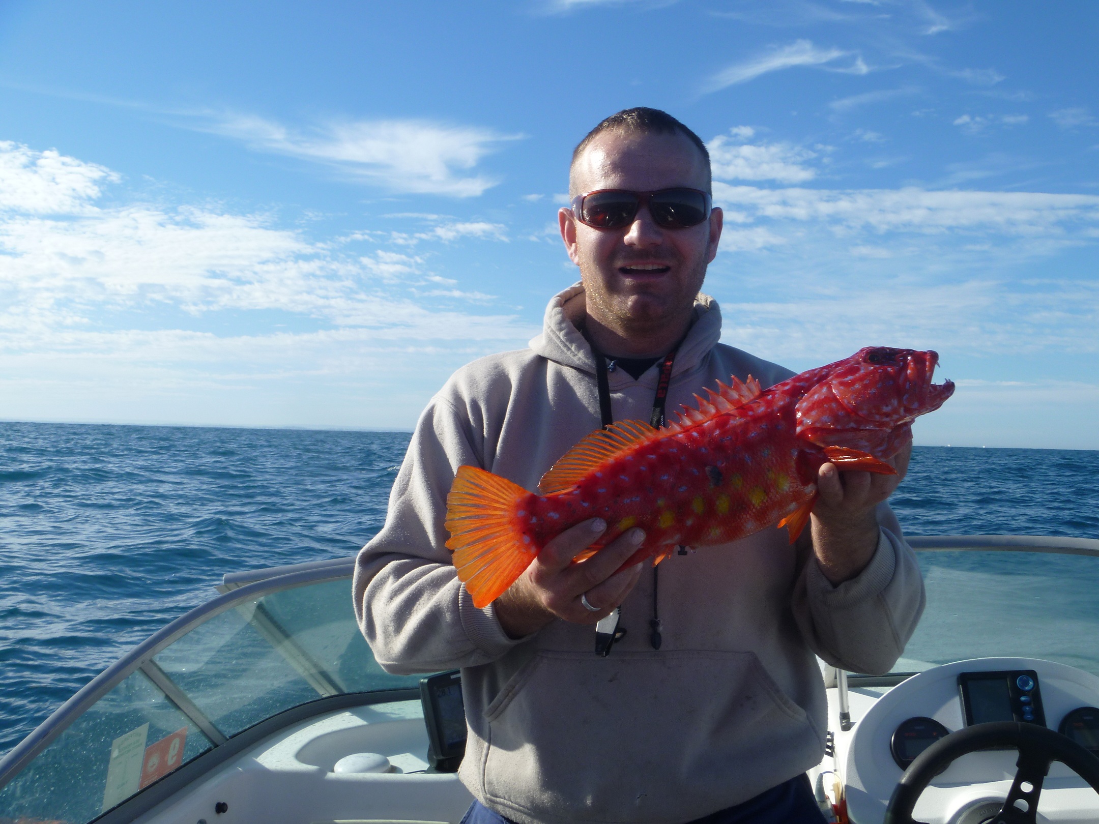 Today we went over again but a bit further to the westend. I had a nice double header with a Breaksea cod and what I thougth was a big wrasse. I was just about to cut it up for bait when Jamie (MetroLBfisher) said it is a Foxfish. After a quick check in the book it went in the esky rather then on the baitboard.