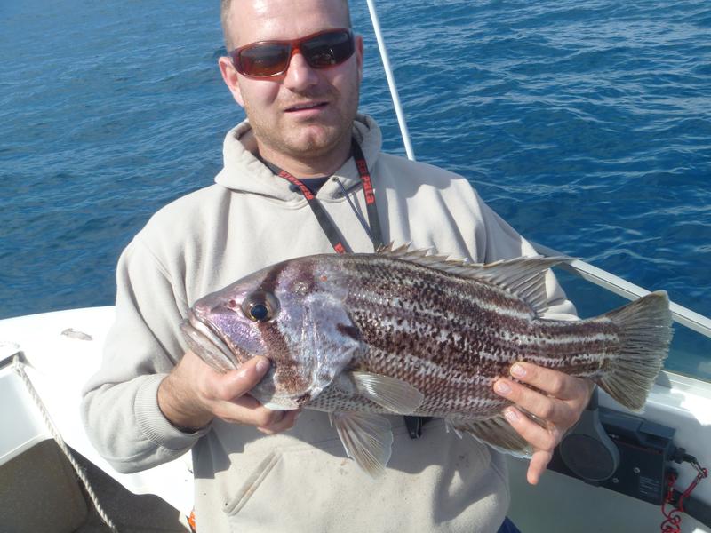 On the way back we decided to try one last time for Snapper at the inner reefs. We got to one of my spots and the wind was going a little. With the wind the drift would have been to quick and I thought I might have to anchor up. I saw a sandy spot in the mittle and I went for it with the anchor. Even after I thought to myself it could be a bit tricky. And sure enough once we tried to pull the anhcor back up it was well and truly jamed. After about 10 fruitless minutes pulling on it from different directions I gave up and cut the rope (once more in my life) but well , thats part of it!