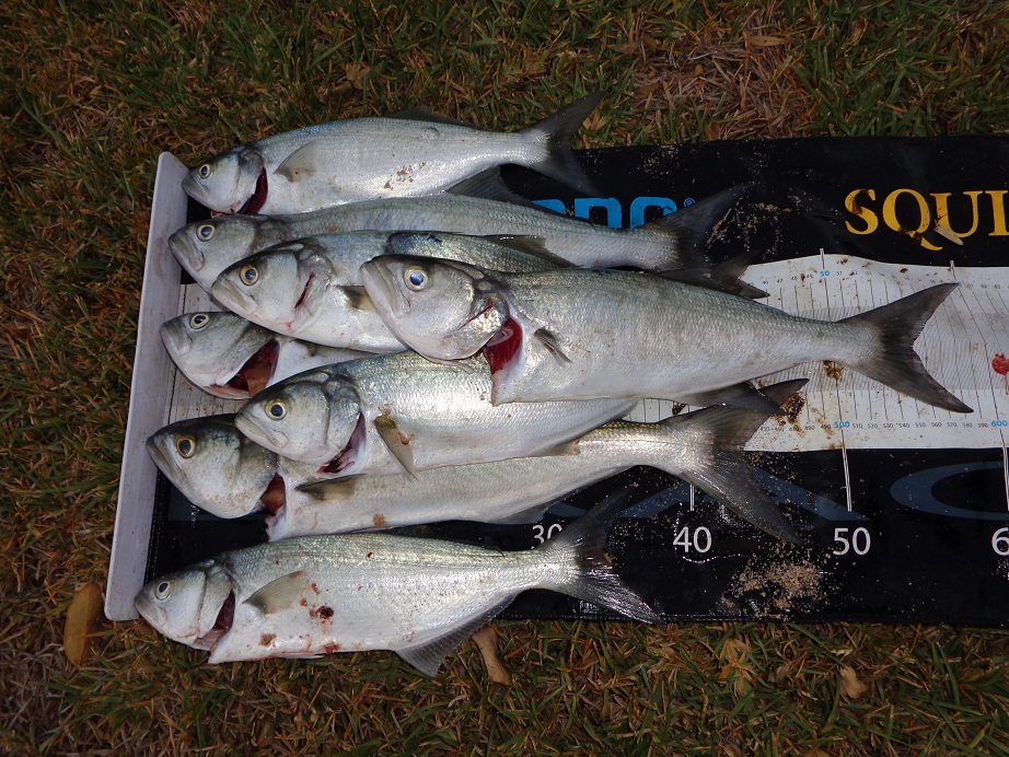 Al gets one and I get another so we finish up the hour and a half session on 4-4 happy with the numbers and more then enuff to feed 2 families with tailor patties but........ I wait for Al to de-rig and cut his hooks and sinker off and i saw the oppurtunity to get 1 up and so I took it. You know how it is...ONE MORE CAST!! Lucky for him all i collected was weed.