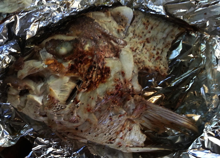 knocked the fillets off and cooked the head / wings for afternoon tea today in the bbq. 50 minutes in foil with dried chilli flakes and lemon pepper.