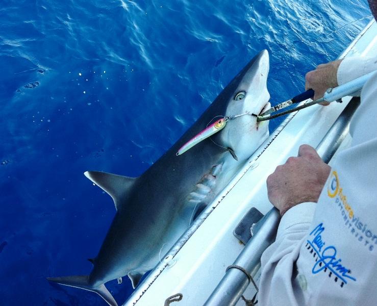 Jigging is my passion, so apart from a 5 minute period of madness where I put bait on a soft plastics jighead at the insistence of Team B Captain 'Cuda Troy when we were a few fish behind Team A, I only fished plastics and jigs. On artificials I landed saddletail, Rankin, dolphinfish, coral trout, trevally, barracuda, Spanish mackerel, gold band jobfish, cobia........the list goes on. The only fish I could not hook despite 6 days of trying was a red emperor...........Friggin Troy the jammy prick got a red on jig after trying for only 5 minutes.........dead easy he reckoned!!!!