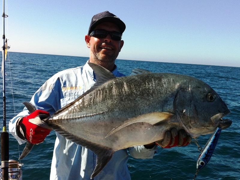 Pennant trevelly apparently. Quite rare, sort of a mix between a GT and a queenie. Followed the boat and out stickbaits for 5 minutes before falling to a mcarthy soft plastic.