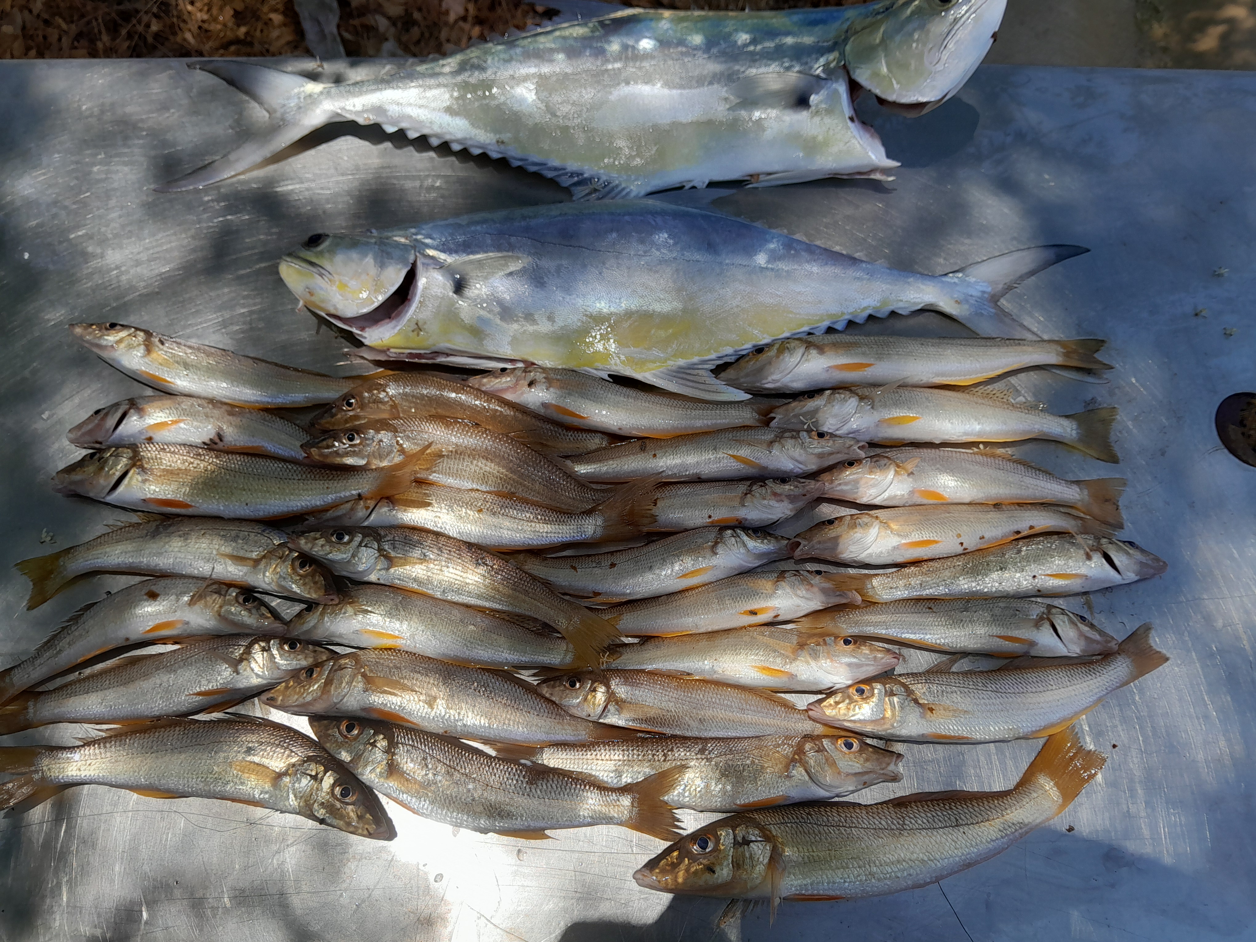 Had a few hours off leading up to high tide and bugger all wind for a change. Went down to my usual beach spot on the spoil bank. Got a good feed of yellowfin whiting and filled an order in for a couple of queenies big enough for 2 to eat. 1 big run and bust off guessing it was a big shovel nose and released another couple of fish added a pic of end result of lemon pepper whiting