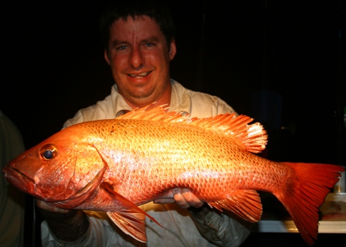 With over 10 fish in the boat on the first spot with the sun still on the horizon things looked good as we headed wider towards the shelf but when we drifted the first spot the signs were bad. In 65 meteres of water and no wind the boat did not move. It was a struggle to locate fish over the next several hours but Mick did get his emperor and it was a great red to break the duck.