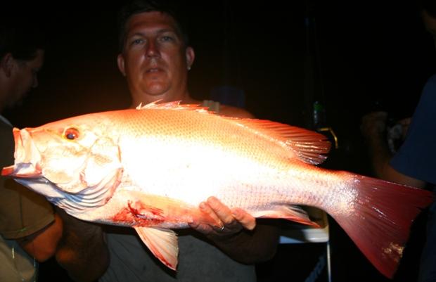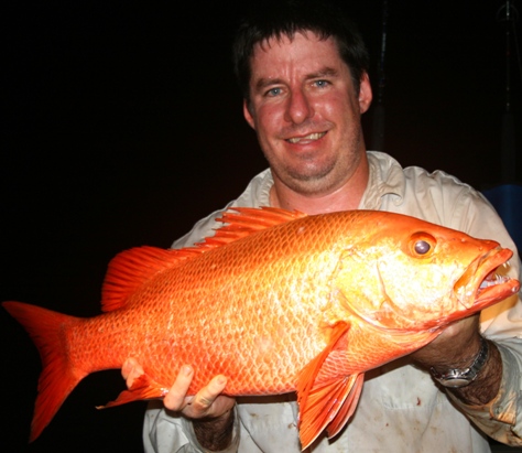 In about an hour we got 3 saddletail snapper to 5 kilos, some more spangleds to add to some previous ones, 2 big Jacks and a Gold Spot cod to round off a nice mixed bag for the night. We kept about 25 fish in the end which was pretty good under the circumstances.