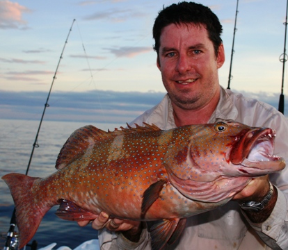 I got a smaller one and Shane a 4.5 kilo saddletail snapper (large mouth nannygai) but due to the slow fishing we headed back in closer to home. Another spot inside the reef produced a quality dark tailed sea perch and Mick got a thumping big Flowery cod but again it was hard work. We decided to head home and stopped at a spot we had to pass through and it was a good call.