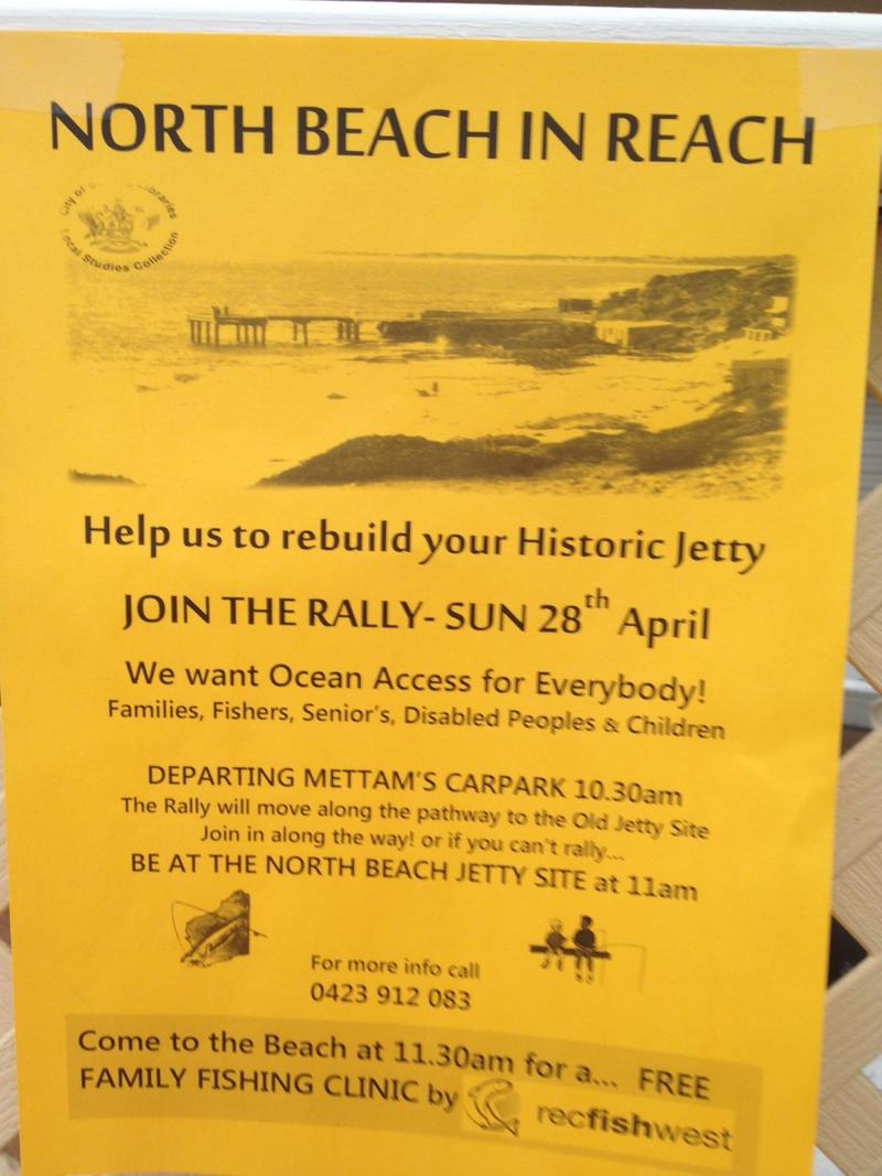A rally is to be held on Sunday April 28th in North Beach. The rally will assemble at the Mettam's Car park at 10.30am and will move to the North Beach Jetty. (Mettam’s car park is on West Coast Highway just to the south of Hamersley Street.)