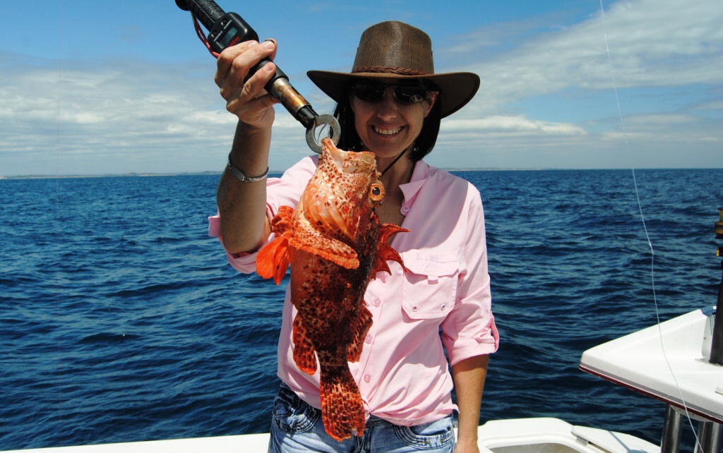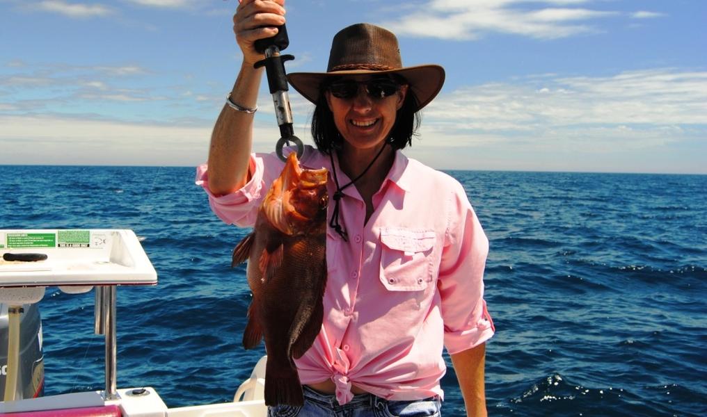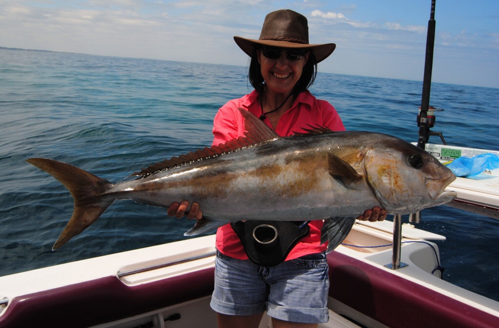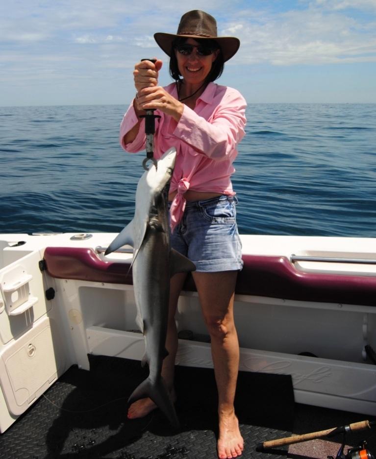 Missus joined me for a fish on Five Fathom Bank. Started the day with a Sambo of 105cm followed by a number of species. We got to see a Tiger Shark of about 7ft which circled the boat a number of times. She managed to out-fish me once again.
