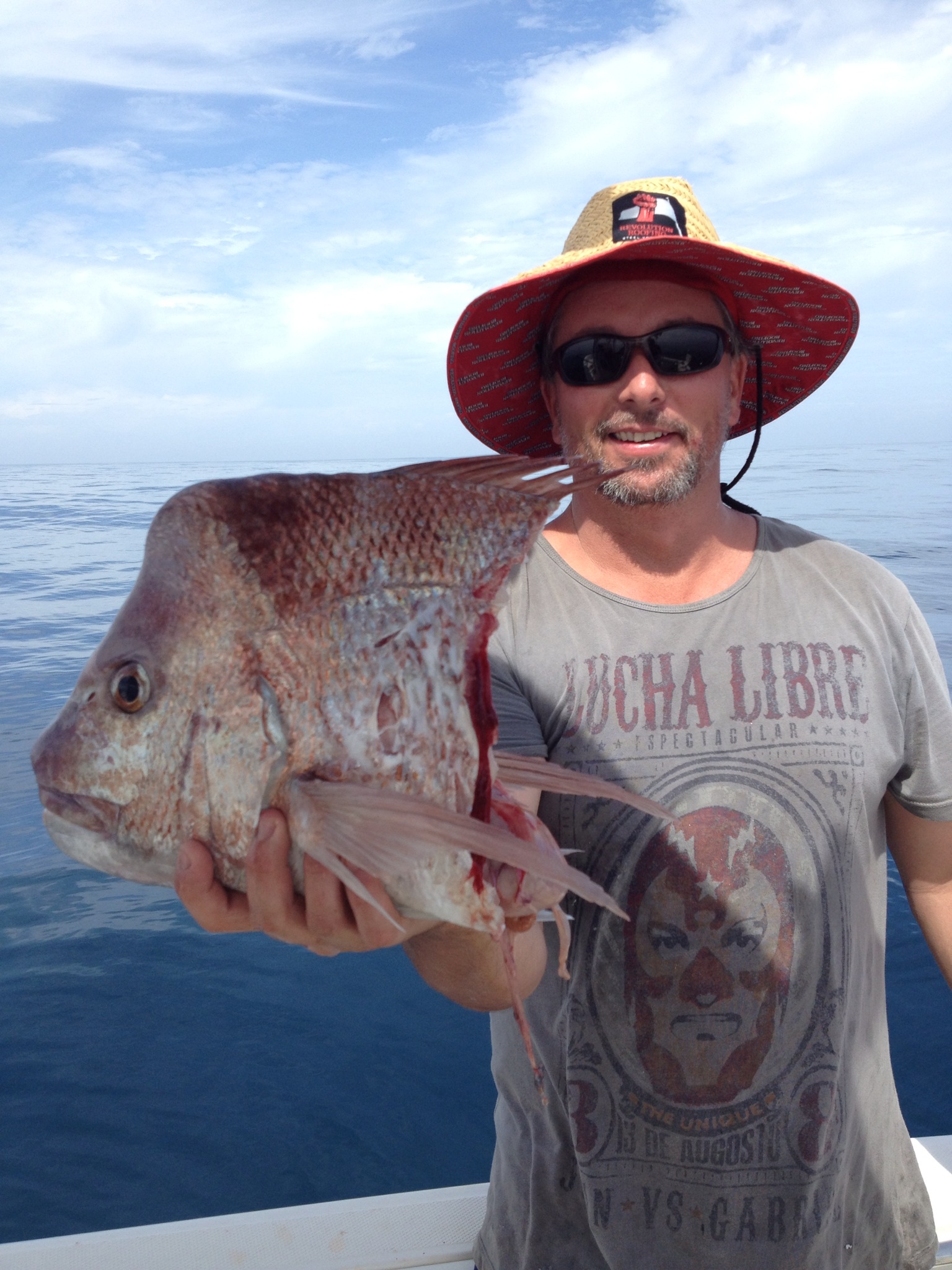 Next drop was absolute mayhem, there were snapper everwhere ! These fish were in the 6-7kg range and with fish that came up , there were another dozen following. We even had Spanish mackeral schooling at the back of the boat, they seem to be in a world of their own ! We took turns releasing fish for the next hour !