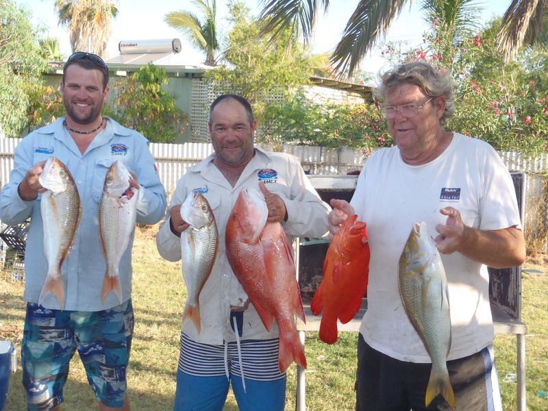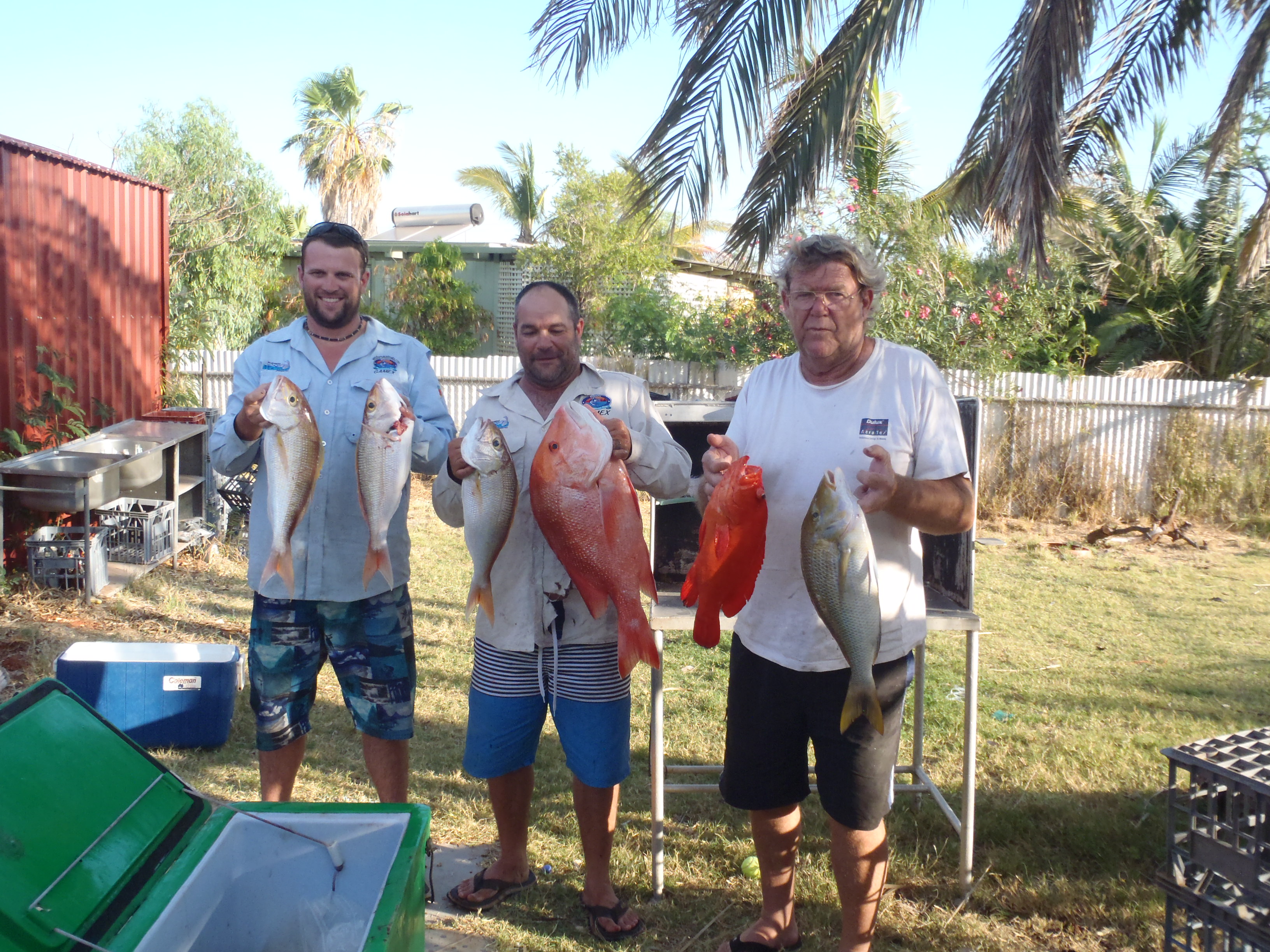 Did a run up to Exmouth to catch up with son Jeff [Deepwater] and his family, left Carnarvon on Thursday and hit the water down the bottom of the Gulf after he knocked off work at the airport around 1100 Friday morning to give the prawns a shot. After much running around and trial tosses with the cast net we finally found a patch of good size banana prawns, finishing up with about 10 litres.