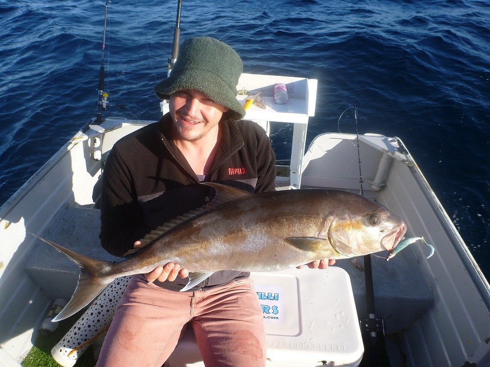 the next stepping stone was a by catch while spinning for tailor on the reefs out from Hilarys, hitting the old faithful Smiling Jack. also not very big at all but I was bloody chuffed (had spent a lot of time over the reefs with live baits in the berley trail for nil) finally I had one, and on a hard body also.