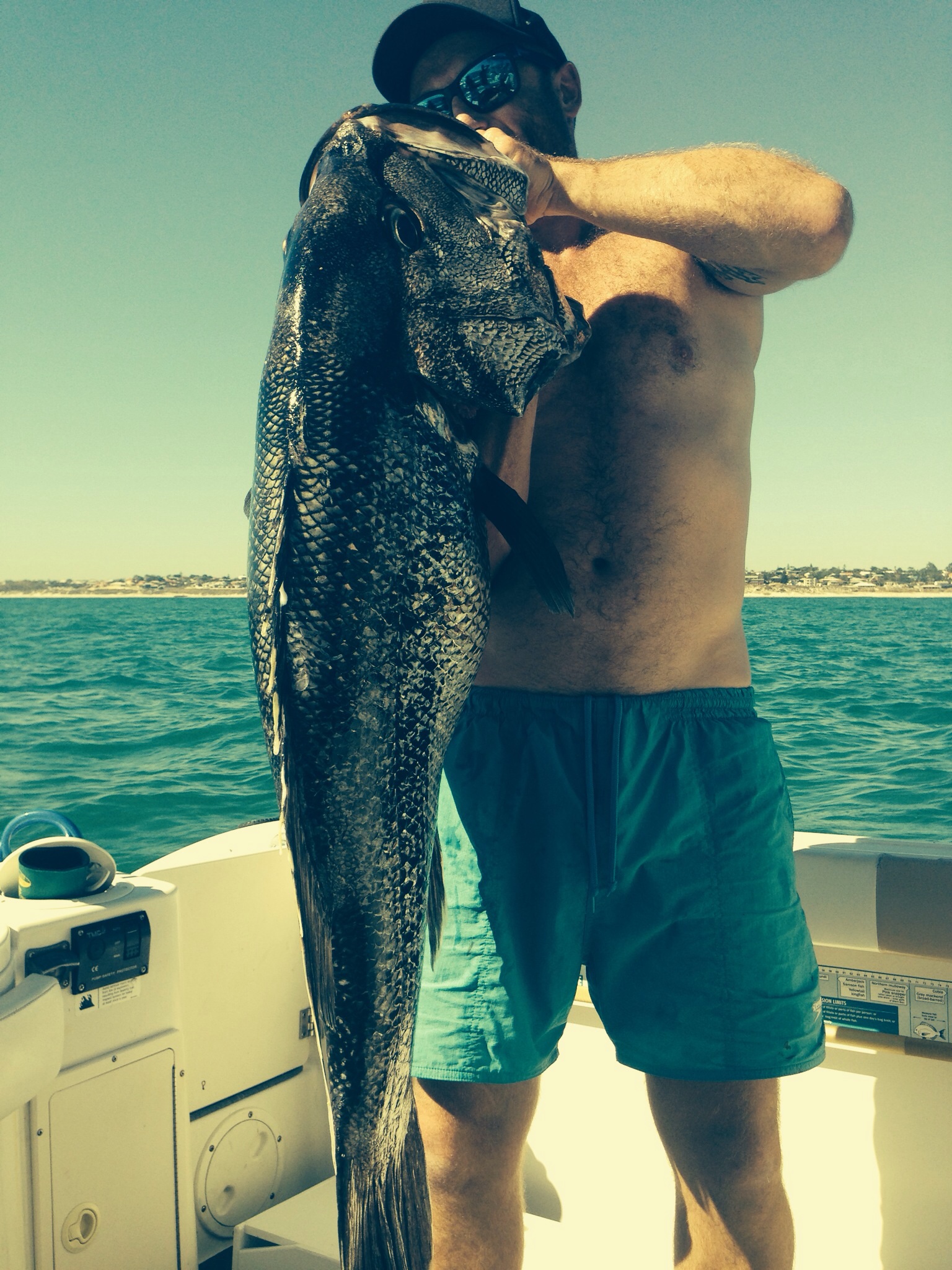 With two rocks still closed we went looking for some new ground out of mindarie on Saturday. Found a nice little lump in 38m and dropped a couple descent fish amongst a few undersized dhus, a nice baldy, coupe blackarse and heaps of rat sambos until my mate Pez land this big fat dhu. Went 1050mm and 18.3kg when weighed back home after it threw up its stomach including a whole occy and being bled. It was so fat and the biggest dhu I've seen in the flesh and we were all sure we finally had a 20 club member....but no. Need to get some scales on the boat I think. Didn't land anything else after this one