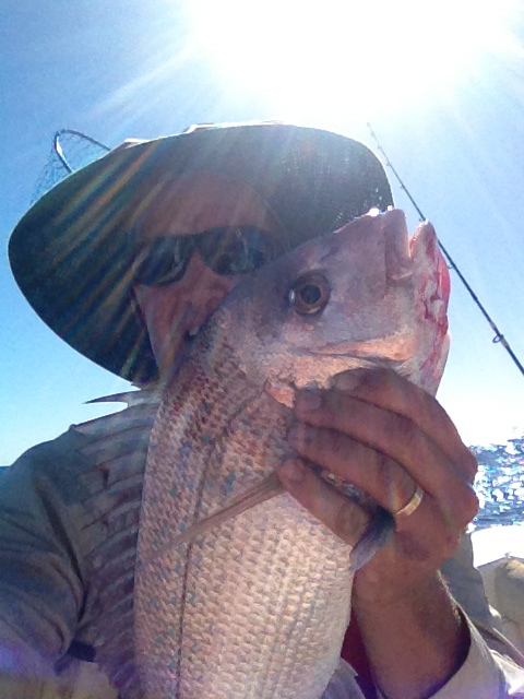 Seabreeze was in pretty early so made the decision to do a bit of reconnaissance out at 50m before it got worse. Found a few craypots so sounded around those for a bit and a few drifts but could only manage a couple of Sargent Bakers. Decided to call it quits at about 12:30 and started making my way home. Loving the 1kw tranny as on the way home at about 18 knots it still shows great bottom. In 39m spotted what looked like a small school of fish so throttled back and done a U turn. Went back over the ground and dropped my new favourite jig down and nailed a nice little Baldie, again not huge but still size.