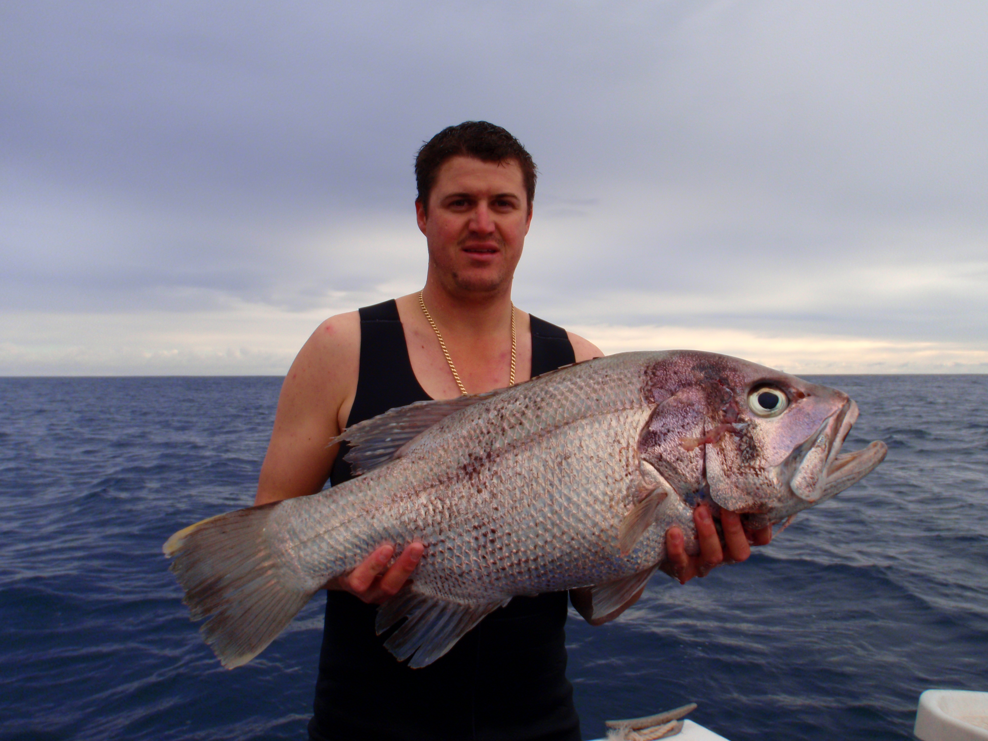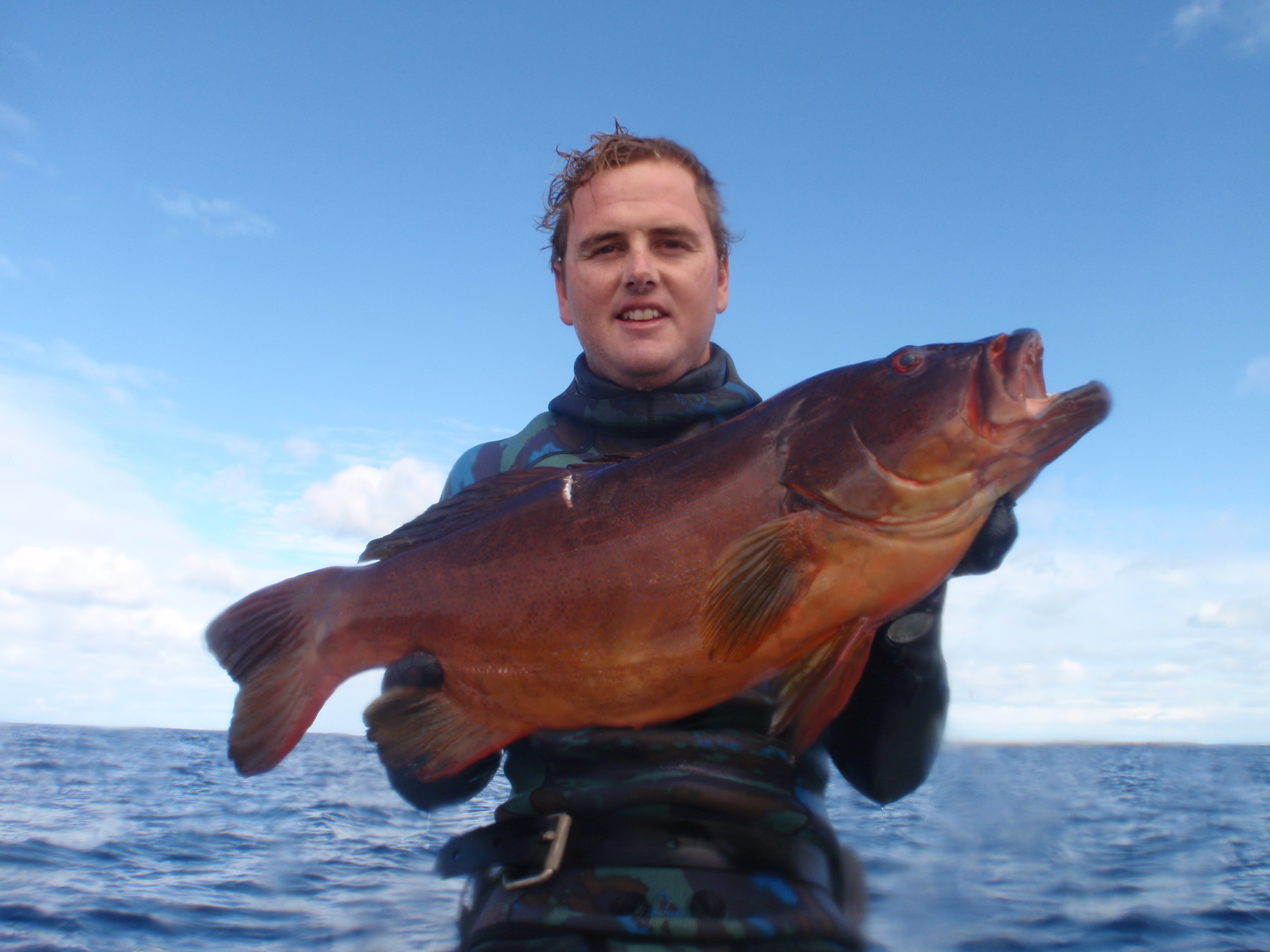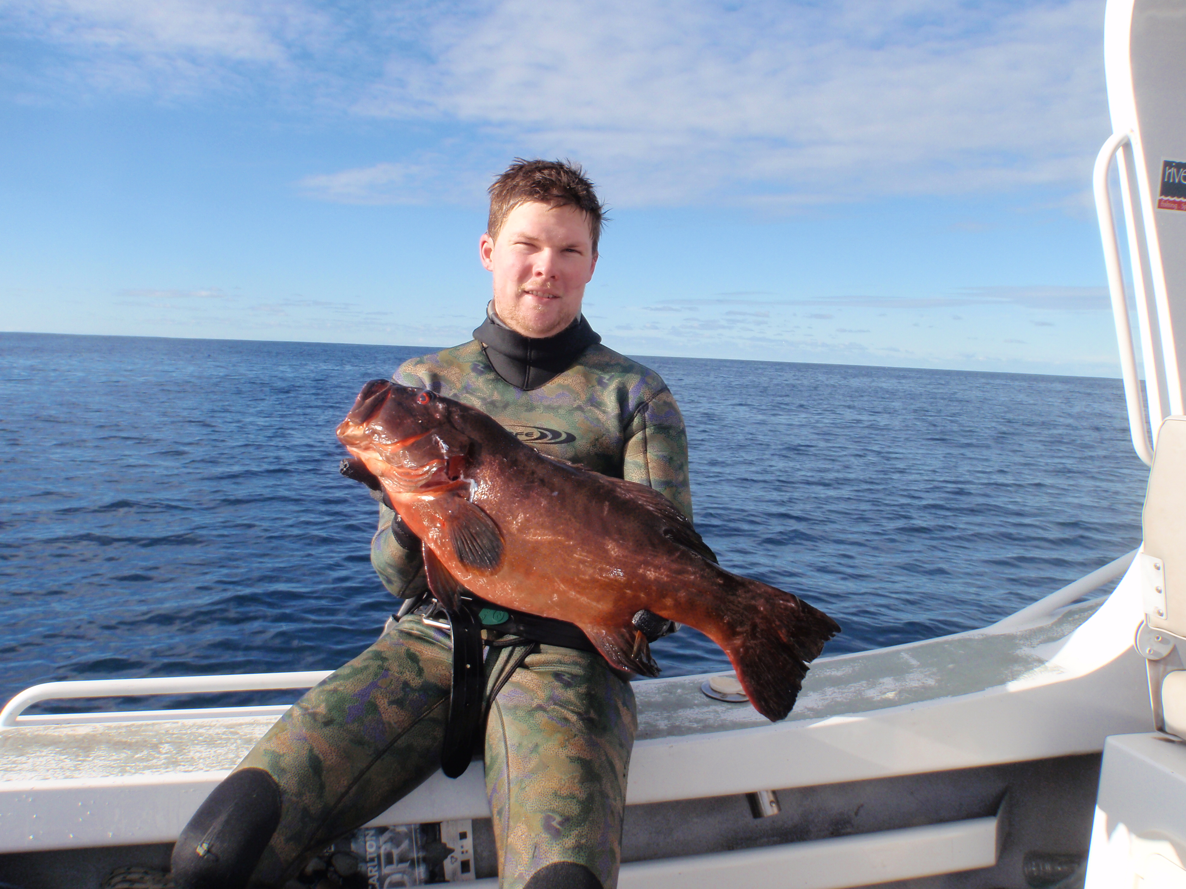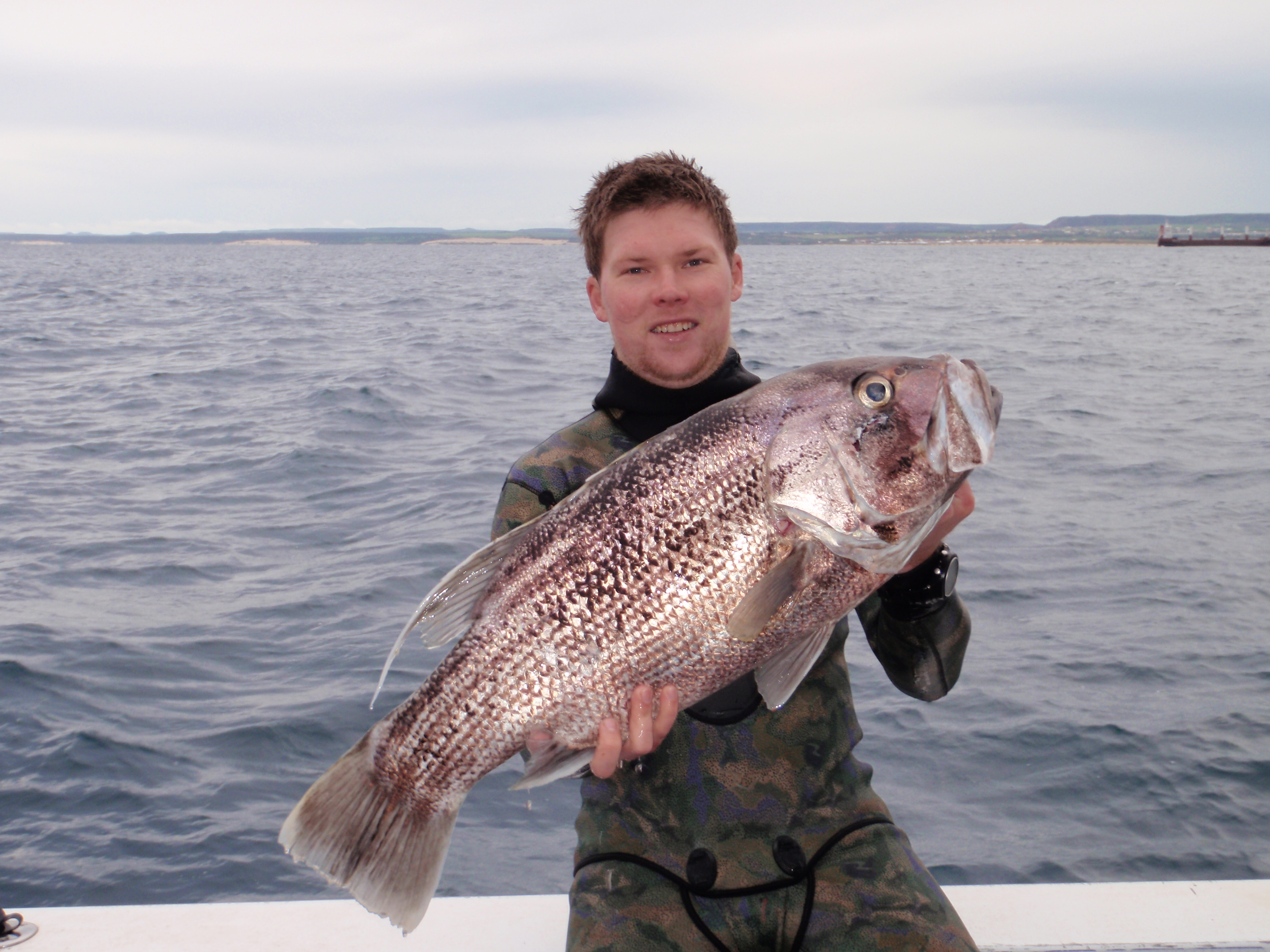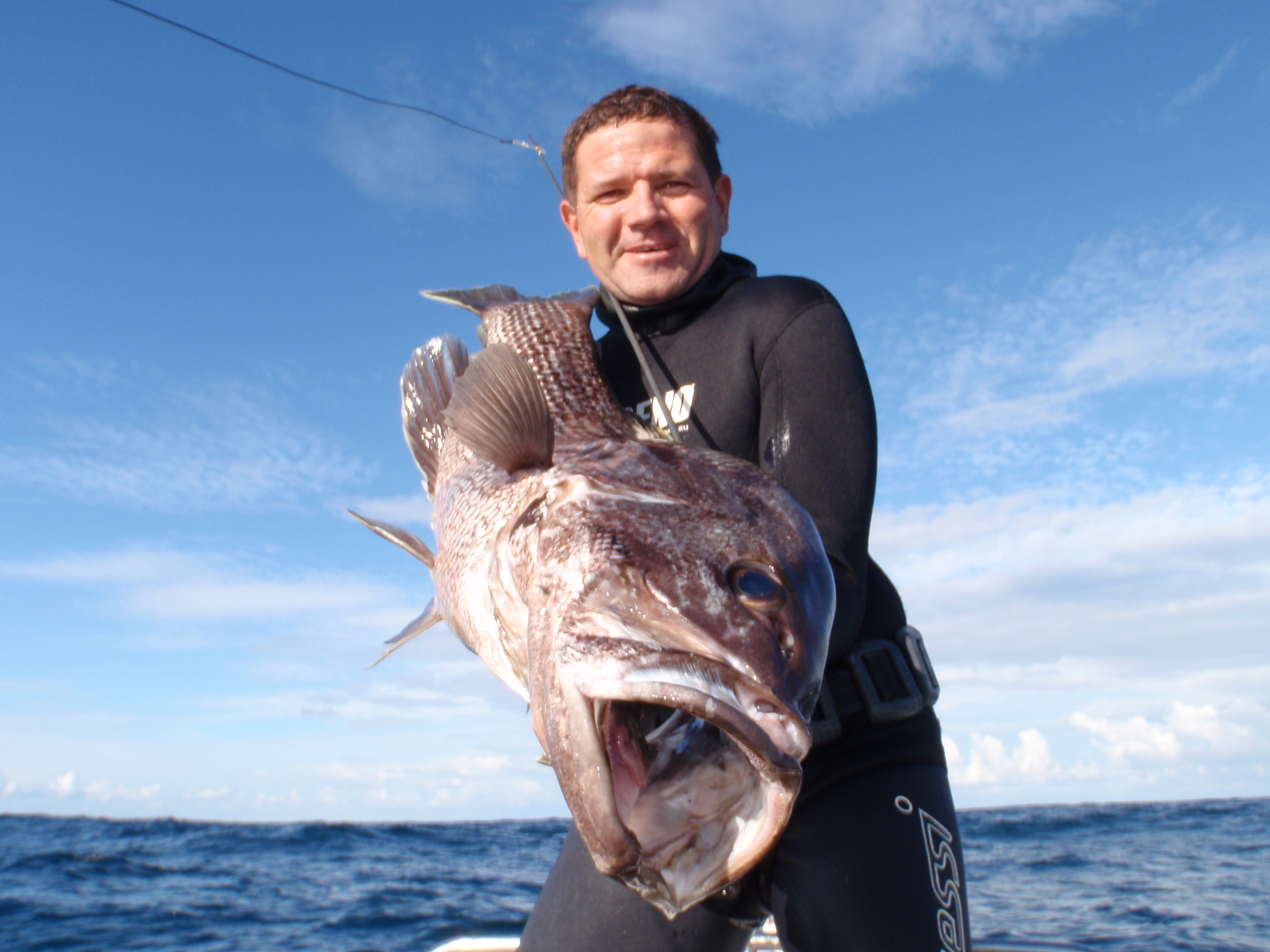 Regular FW member Flagpole with his first Dhu taken freediving - Stoked he was with this 8.6kg fish!
