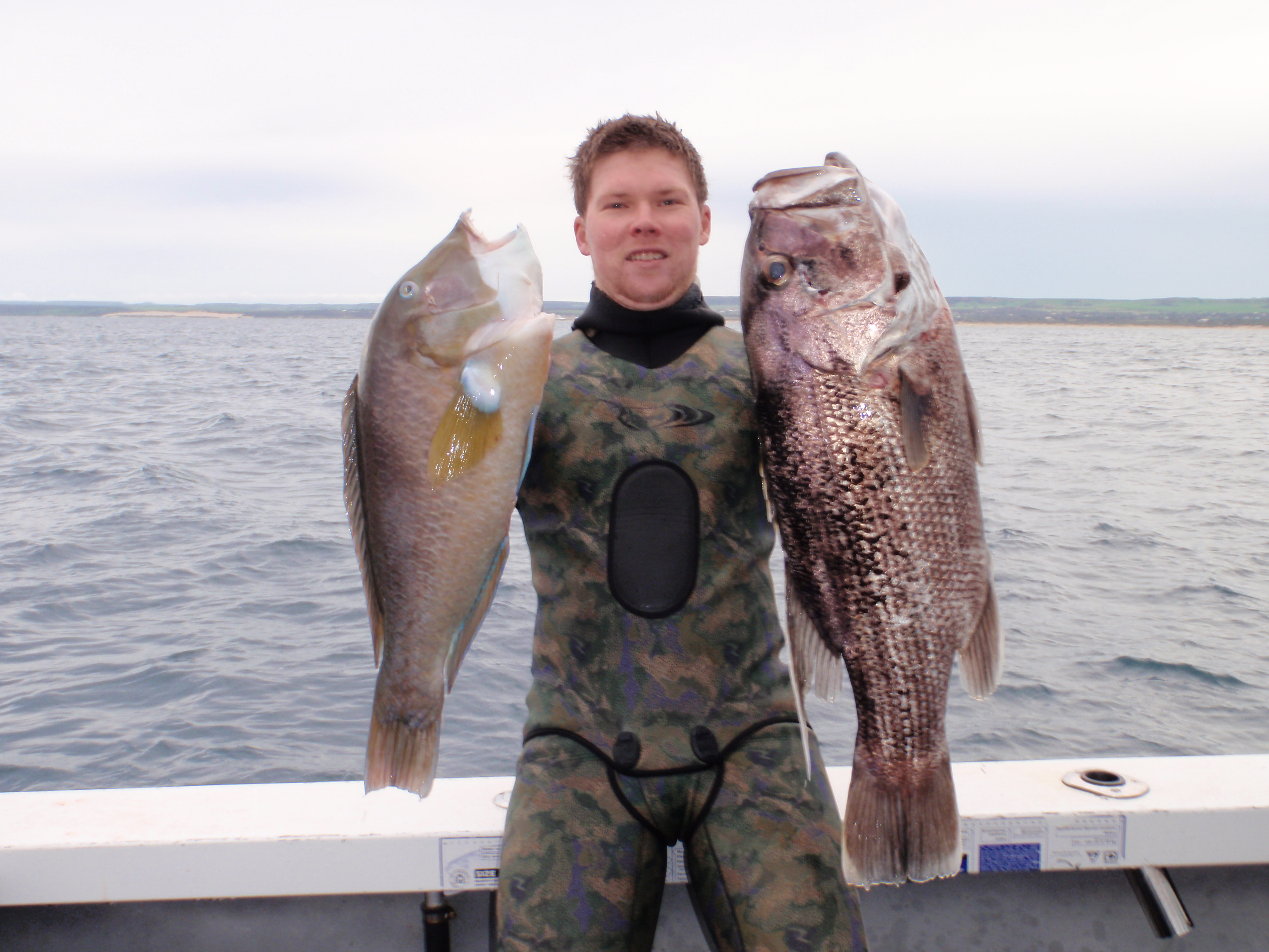 First pic is from awhile back local off gero - Adreno's Chris Piero with his first & possibly only WA Dhufish est 12-14kg. Chris is from QLD and a top bloke! Capable of 2:30 breathholds and the stories he told that day of doing 30m plus freedives where unreal!