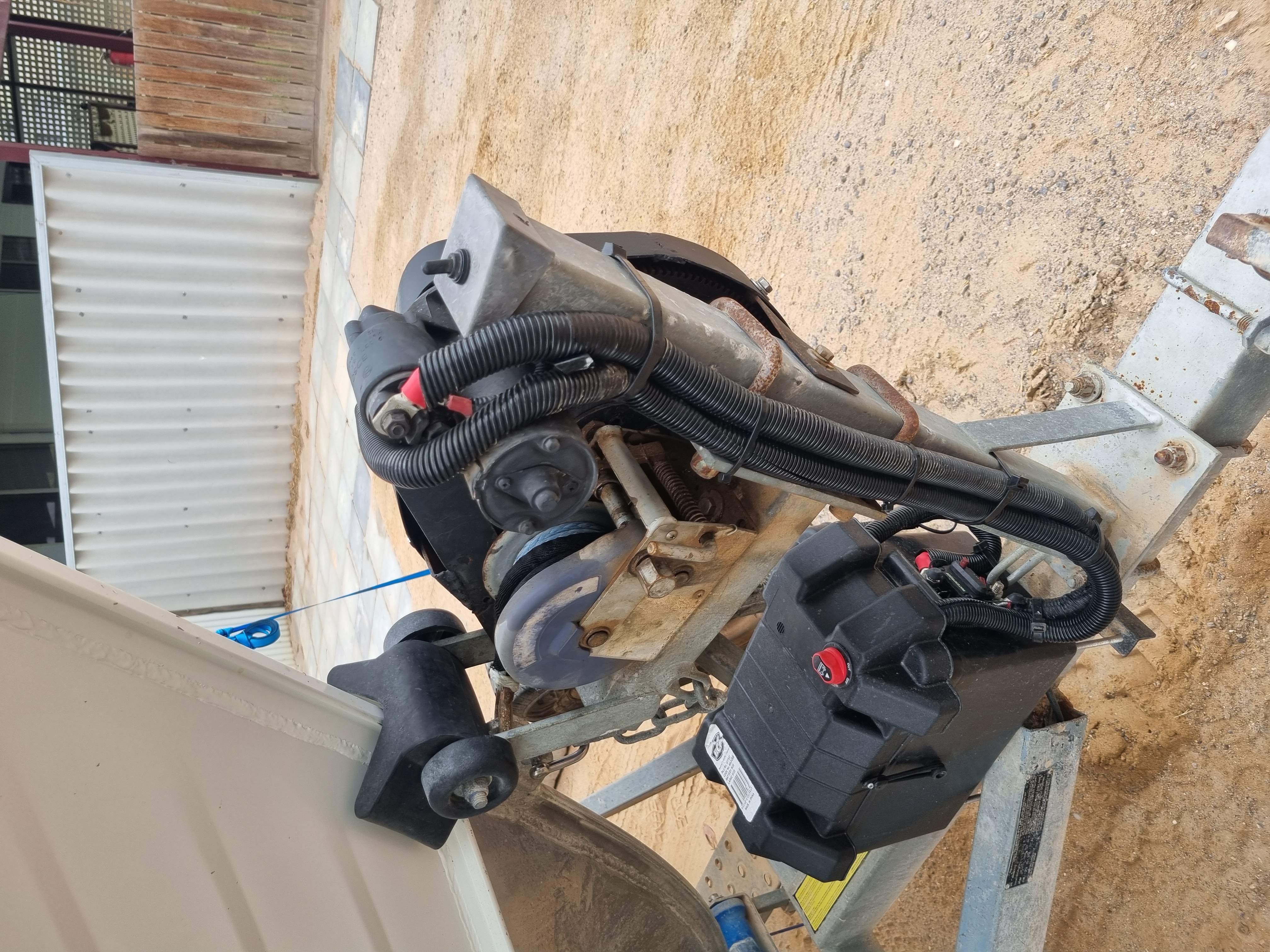 Starter motor boat winch set up