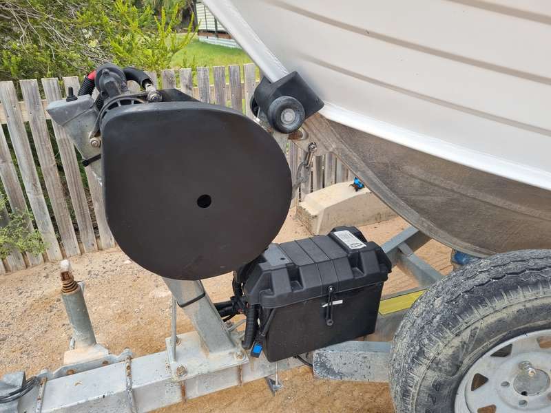 It's all run off a battery that has a quick connection for charging. Inside the battery box is 5mm plate & rubber that thread bar goes through down to angle bar to secure everything. I am pretty remote so basically used what I had in the shed, all in all I'm pretty happy with how it turned out.