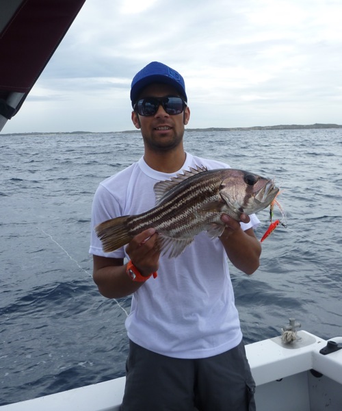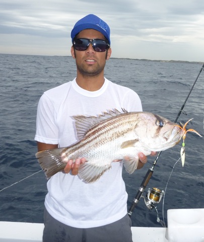 I coudn't get away from the Dhuies they were hitting my jig from every angle whether on the drop or pulling up. I even had one take it as i was dropping it to the bottom for the first time. Also getting a few hits then leaving the jig still for a sec or two and then jigging it again and they were coming back to much it. Nothing of big size but none the less dhuies on jig. My deckie couldnt believe it and i think i didnt either. They were almost like a Tailor sesh with poppers just going nuts. I ended up with 5 today and my mate using bait managed 1. Nothing big just size fish and all were released.