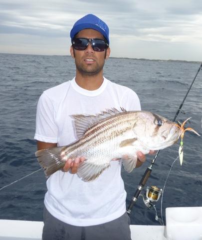 Tried a few spots on the way for a few blackass and just undersize pinks. Got closer to the lump and started fishing again. Sounder fired up and so did the fishing.