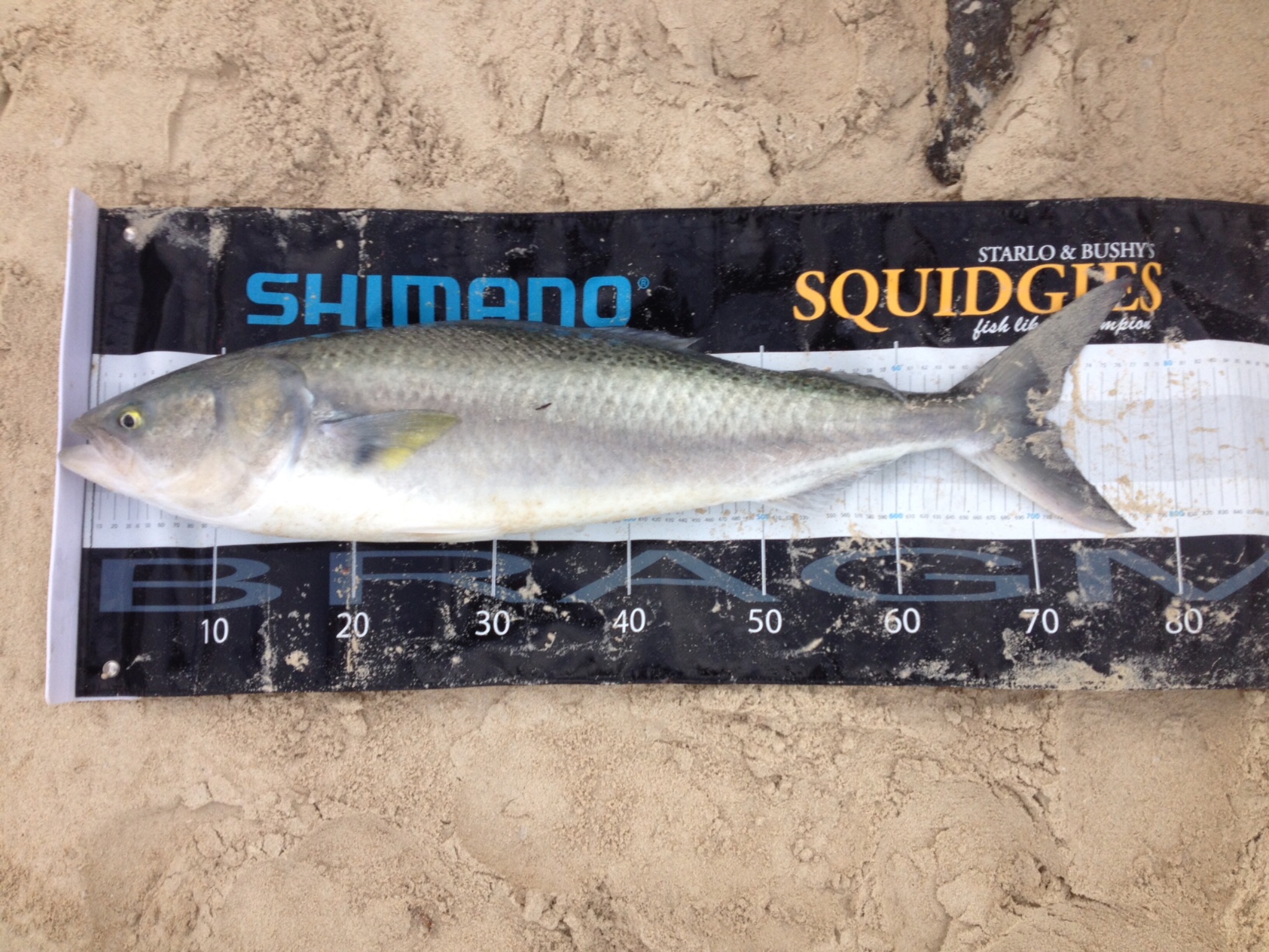 Decided to head down for a quick beach fish last Thursday 6th/8 but conditions were that nice I thought I would brave the cool water for a reef fish instead. So glad I did as the Tailor went absolutely nuts with a couple of Salmon chucked in just to spice things up a bit, bait casting mulies was the go but soon ran out & switched to lures. Ended the morning with 30 plus Tailor, 2 Salmon & just to top of the morning a Sambo which gave the 11ft ASSASSIN Amia & little Shimano a nice work out. The Sambo came in on a Stick Bait but in hind sight I think he may have hit a hooked Tailor & got a bit more than he bargained for. Kept 2 Tailor & a Salmon with everything else released